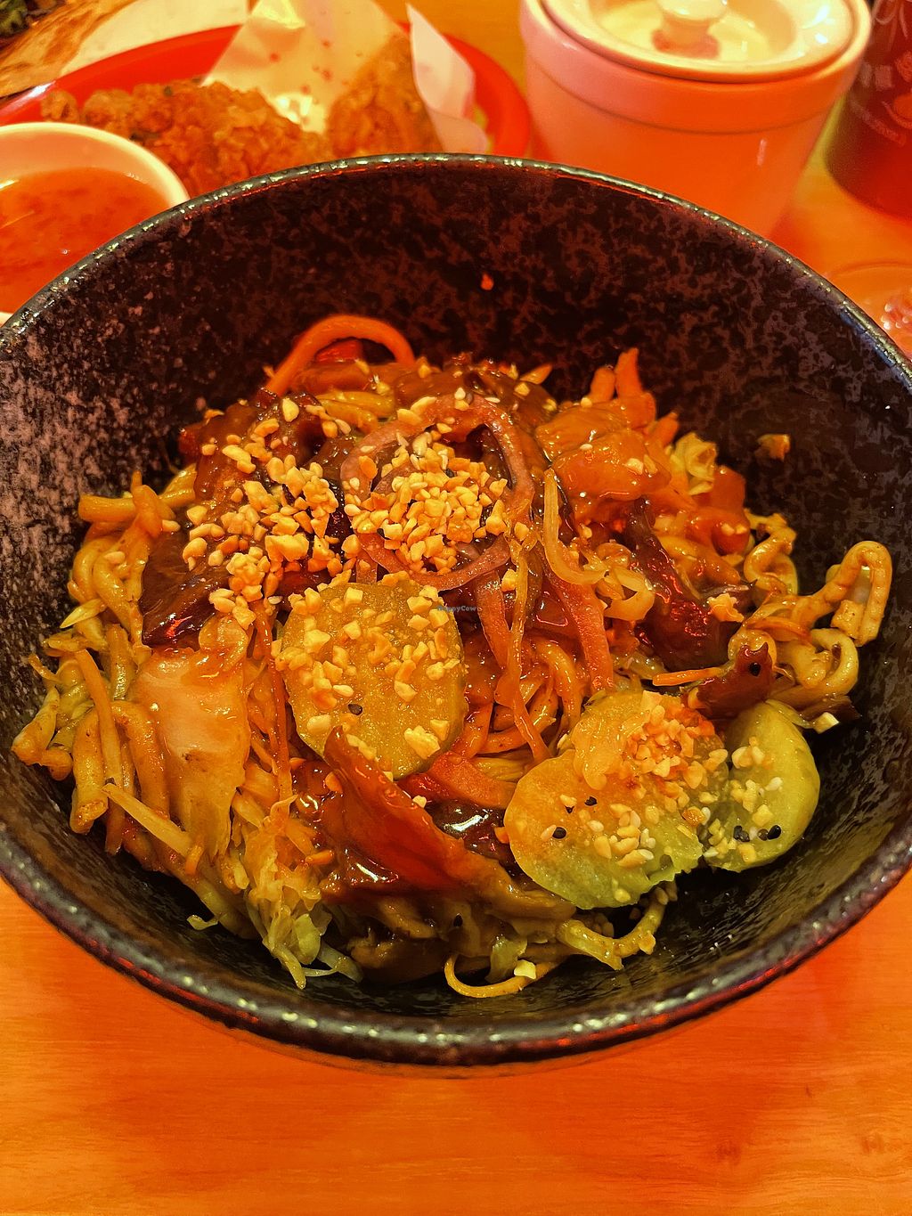 I walked past this place several times before I realised they were both on HappyCow and seemed very popular. The huge vegan menu was amazing and the food was perfect. I'm really glad I finally stopped. Check out the lychee pork