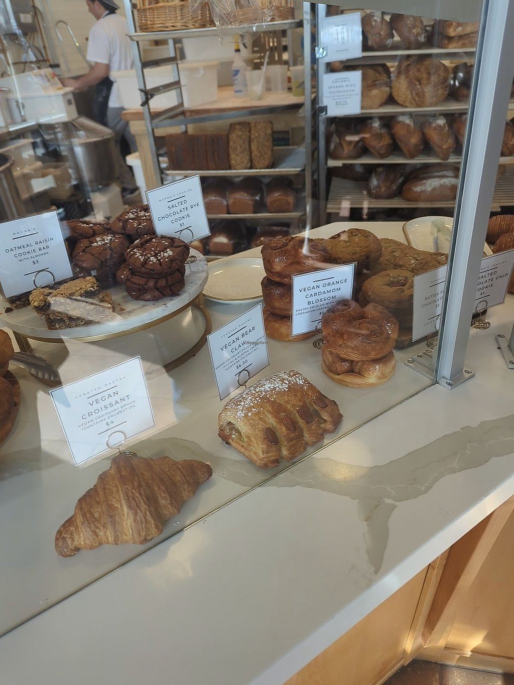 I absolutely love the vegan pastries here! I am so glad there is an option for us now!! I have had the Vegan Bear Claw, The Vegan Croissant, the Vegan Chocolate Croissant and the Vegan Orange Cardamom Bun and they’re all SOOOO good!! My absolute favorite is the Vegan Orange Cardamom Bun though🫶🫶 I also love the aesthetic of the restaurant itself and even when there is a long line out the door it doesn’t take too too long to get in, get your pastries and go😄The ONLY bummer is that they have little to no options for actual vegan food. Maybe the avocado toast but you have to ask for a few items to be removed for it to be vegan😡