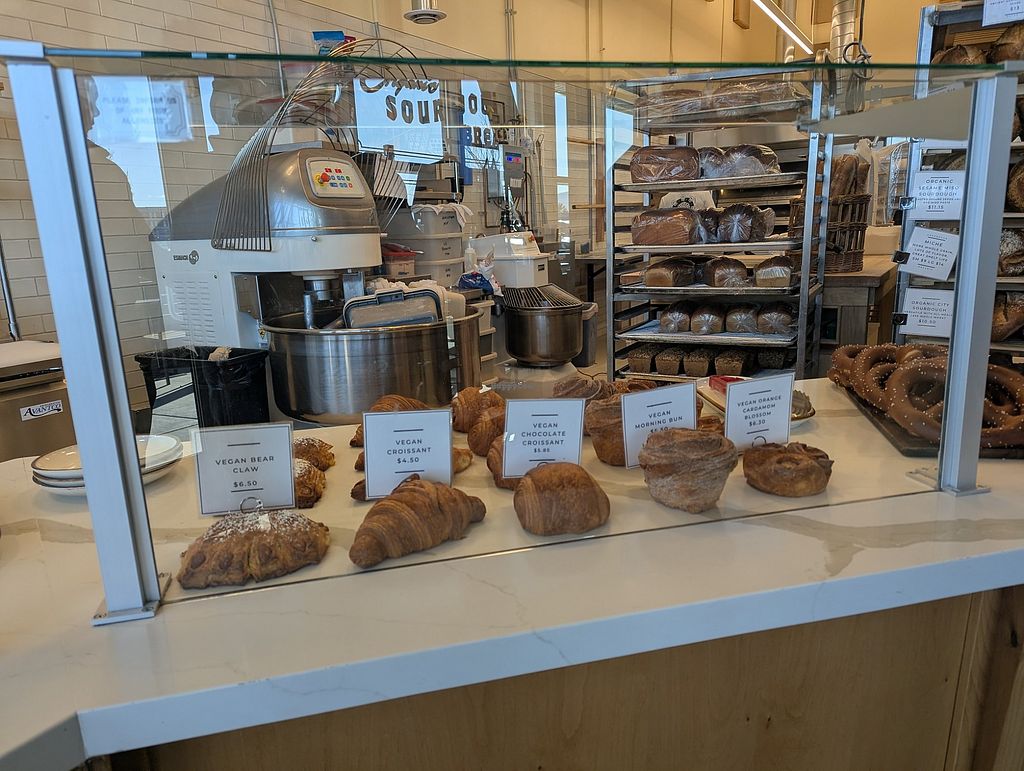 This bakery has sourdough breads and a rotating selection of truly excellent laminated vegan pastries, including croissants.