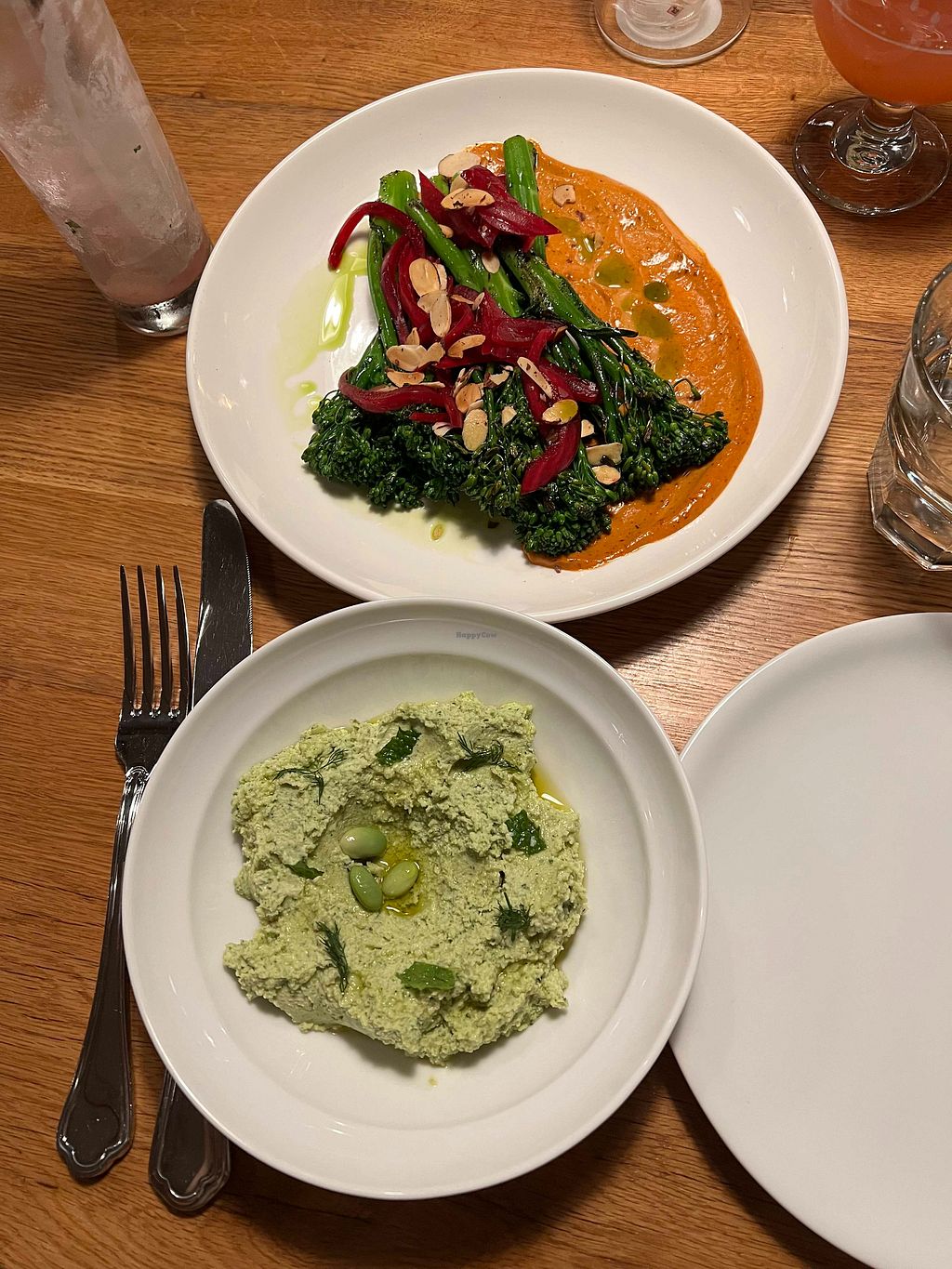 The Charred Broccolini (top) and the Edamame Hummus (bottom). DELICIOU…