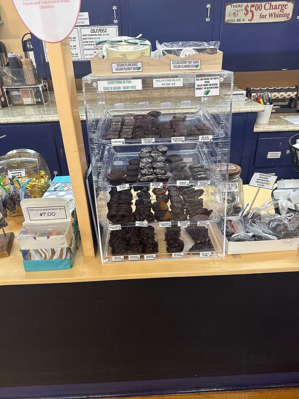 Read moreUpdate 12/23: They are really working to increase and improve their vegan options and now have 10-12 different vegan chocolates available. They keep the vegan items separate so you don’t get confused. An employee has been trying out new recipes of their own (they used to buy from a supplier) so it’s great to encourage them! Keep it up.