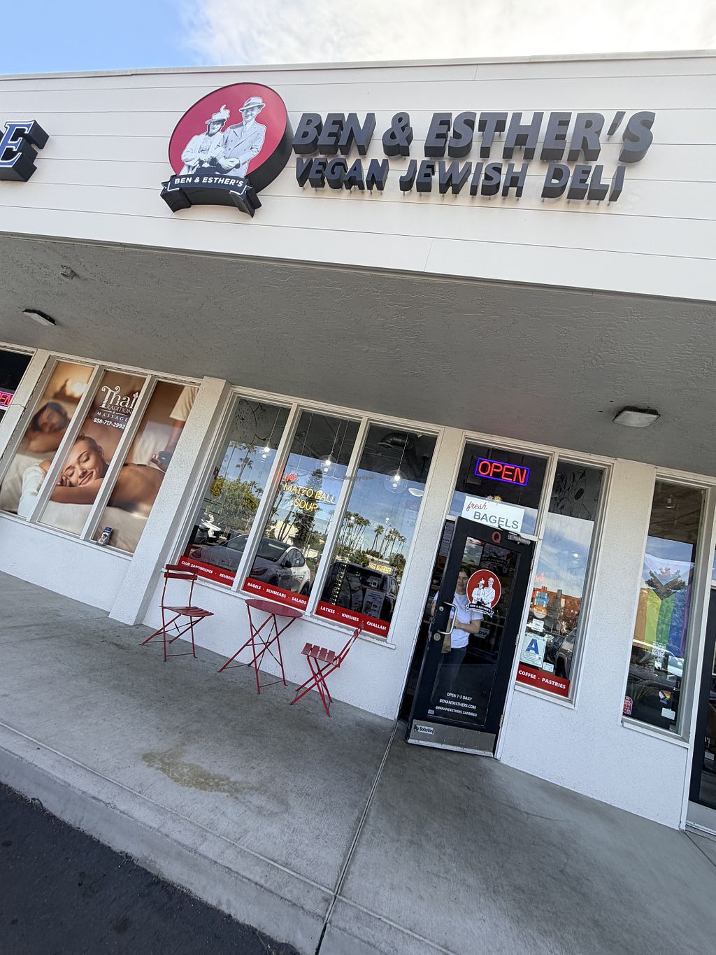 If you happen to be in San Diego, I would personally consider this a must-hit restaurant. Everything here is delicious and although my expectations for this place were very high, they were still surpassed. I had a steak, egg, and cheese bagel that was excellent, with the vegan steak being very tender and filling. I was also very impressed by the other bagel sandwich I had, a latke, egg, and cheese bagel sandwich that was somehow even tastier than the steak bagel sandwich I had. I also opted for an order of matzo ball soup, which was massive (maybe a quart or more? No idea how to quantify it). I had never had matzo ball soup before, but now I’m hooked: the matzo balls had an amazing chewy, broth-soaked texture on the outside with a firmer, denser interior. Truly some of the best soup I’ve ever had. I also had a chance to try some macaroni salad, some pasta salad, some potato salad, and some dolmas, all of which were very fresh and flavorful. Aside from that, I also ordered some desserts, including a black and white cookie, which was good. However, I was truly blown away by the other two desserts, which were a cake and a pastry. The cake was Biscoff flavored, and was perfectly moist on the inside while also being covered with some phenomenal cookie butter icing and Biscoff cookie crumbs in the outside. The pastry I had was an apricot Hamantaschen. The filling was great, but the light, flaky dough itself was some of the best bites of a pastry I’ve ever had, no exaggeration. My only minor complaint is that they ran out of some food items at the end of the day, but considering I went here about 20 minutes before they closed, that was certainly expected. If I ever come back to San Diego (or if I go to Portland!), Ben and Esther’s will likely be my first stop from the airport.
