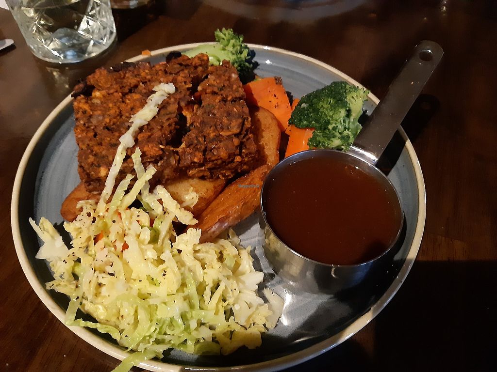 Went for Sunday roast with my boyfriend. I had the nut roast he had the lamb shank. We shared a vegan brownie for dessert. Friendly staff, had to get a uber here as it was slightly out of town but lovely meal. Great looking pub inside and out. Cool fox paint on the side. Friendly staff as well 😊