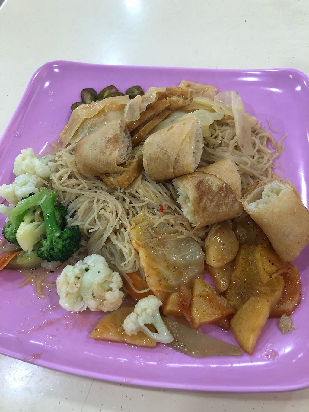本愿素食 is a veg stall inside Li Soon Coffee shop. Offers white/brown rice or bee hoon/noodles, and eat it with dishes like broccoli, cauliflower, kailan, brinjal, curry. At dinner time tze char dishes like yang zhou fried rice, fried hokkien noodle. No garlic, onion, or egg. Closes alternate Tuesday except if it falls 1st or 15th day of lunar month.
