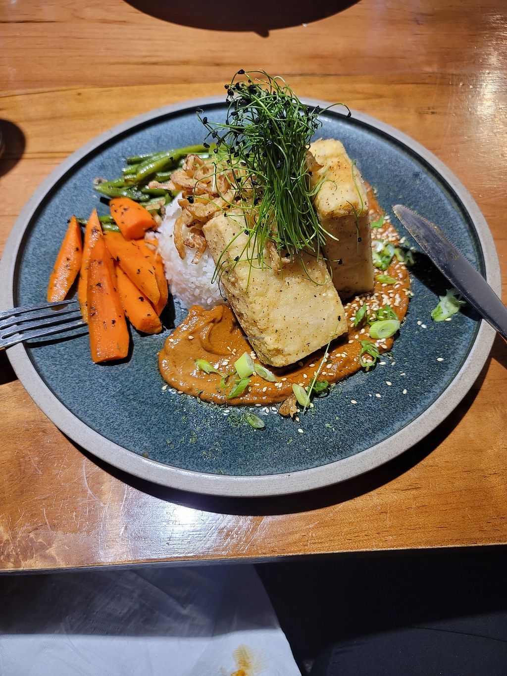 To be honest, when the restaurant first opened, I wasn’t sure about trying it as it looked like vegan patties either on a bun or in an entree like a Salisbury steak nicer hungry man dinner. I saw they posted an updated menu and there were a lot more options. Today, we tried it and were happily surprised! Very tasty. We will definitely be back to try more menu items!