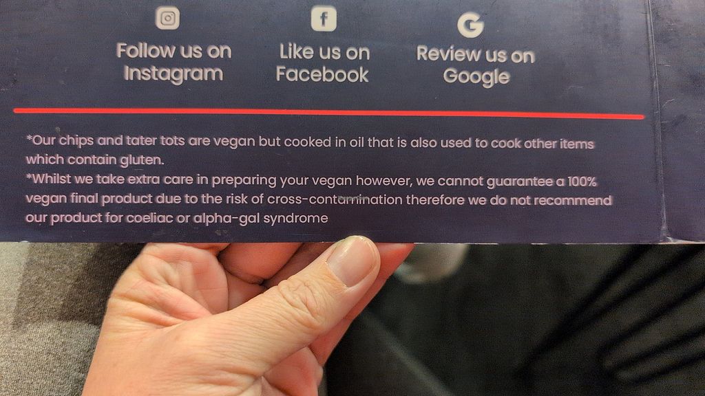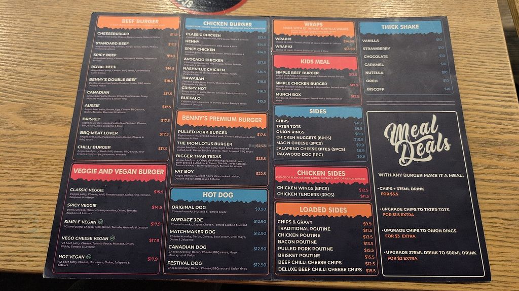 Serves meat, vegan options available. Burger place offering “Simple Vegan” (vegan patty with salad and sauce), “Vego Cheese” (vegan patty with vegan cheese), and “Hot Vego” (spiced vegan patty with chilli sauce).