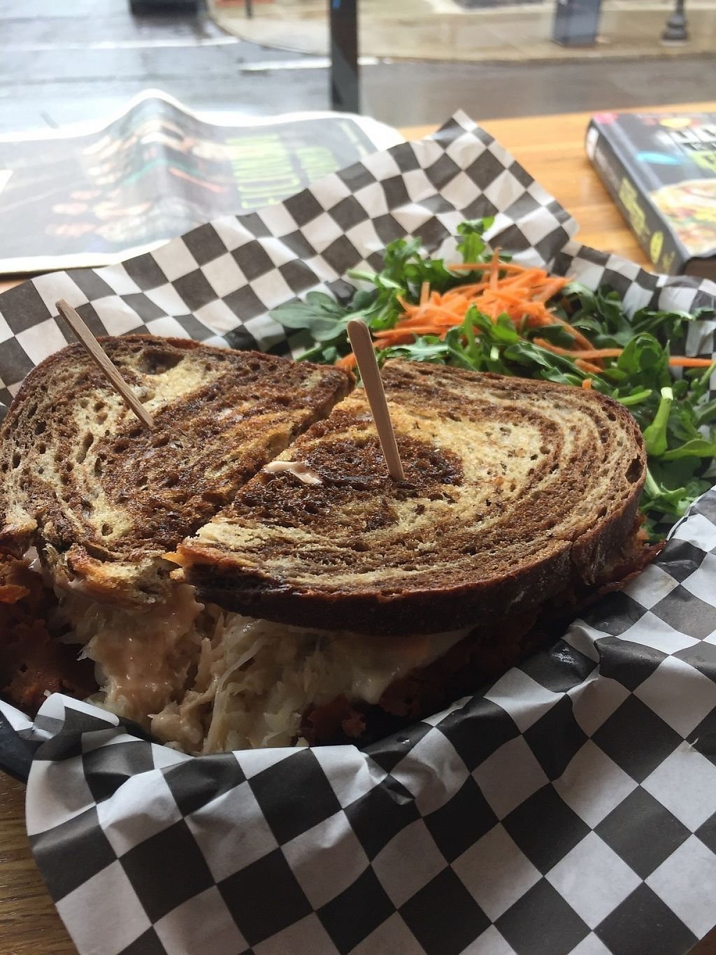 Reuben with homemade seitan pastrami