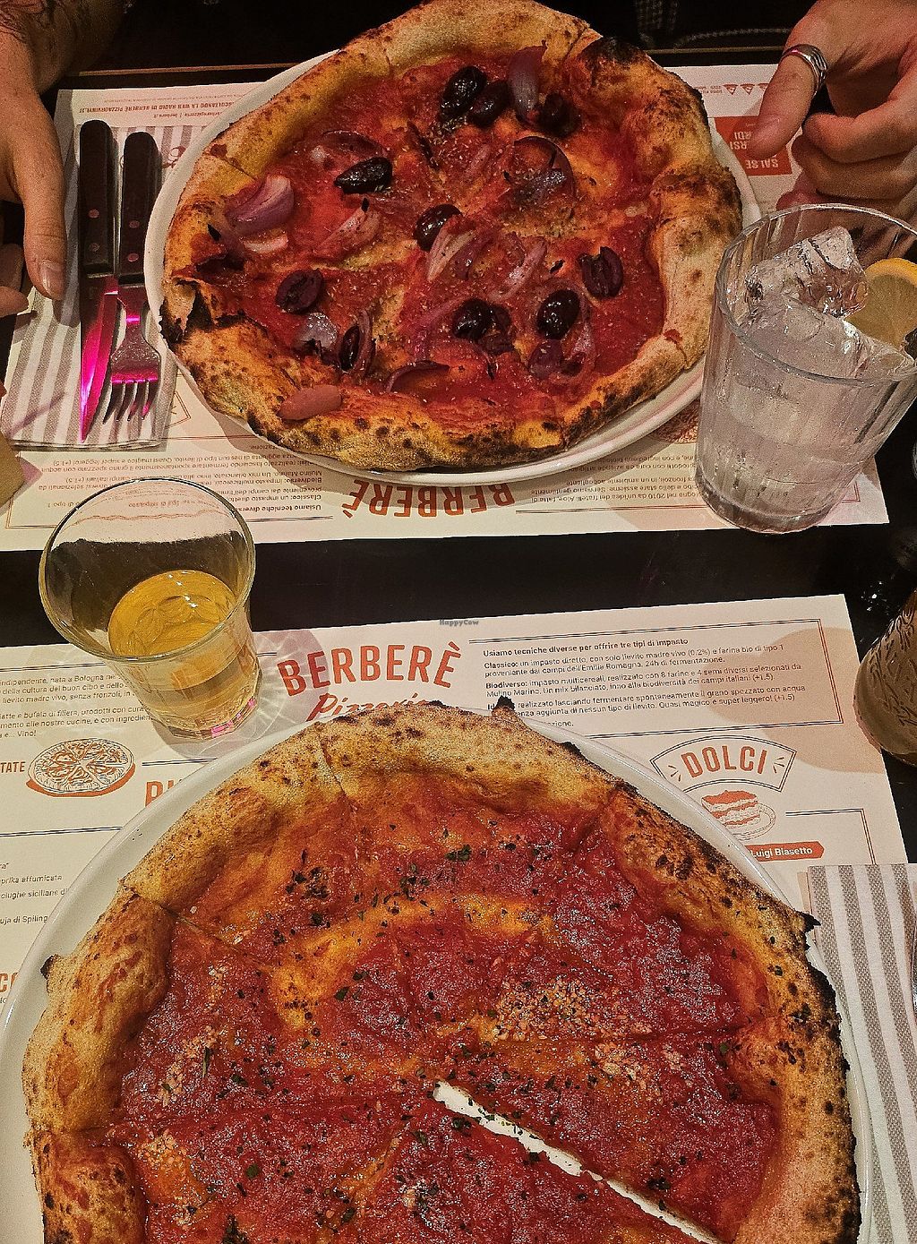 Pizza with olives and onions, delicious but a bit light on the topping…