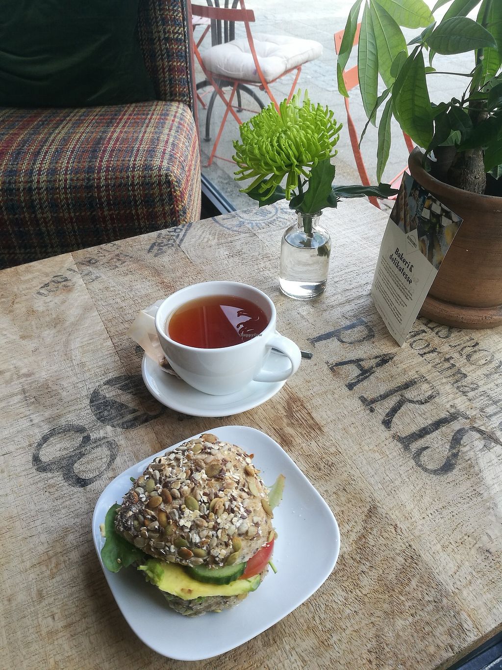 Really cozy interior. The member of staff was very helpful and generous with toppings. My custom made vegan sandwich had hummus, avo, tomato, cucumber and lettuce.