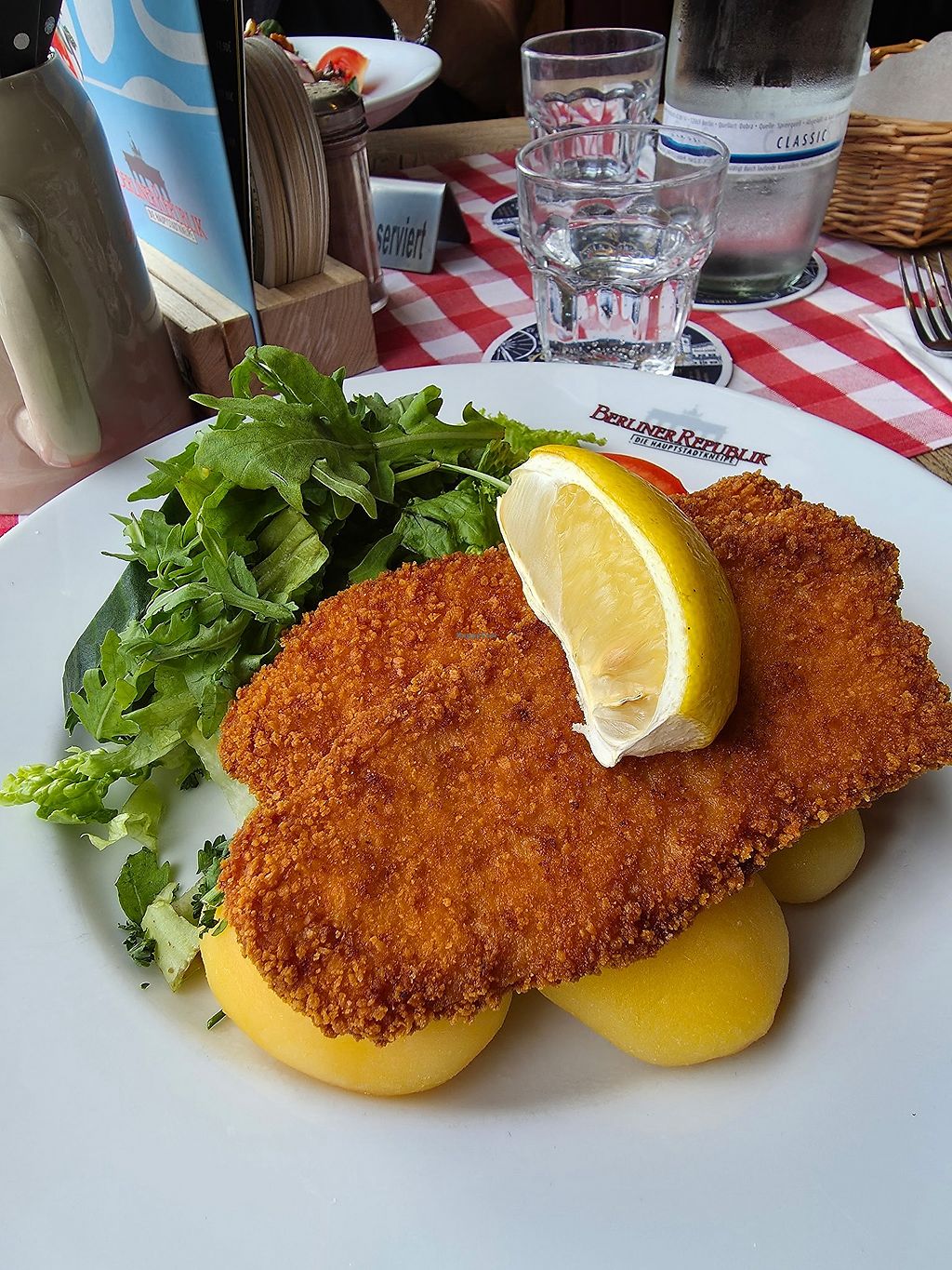 The vegan schnitzel with potato salad was quite good. I'd recommens it for sure. However, especially compared to the Schnitzelei with their "flexitarian manifesto" as they call it, the Berliner Republik could do better. There wasn't even a vegan dessert and as the title already says, there are only few vegan options on the menu and they're all quite pricey.