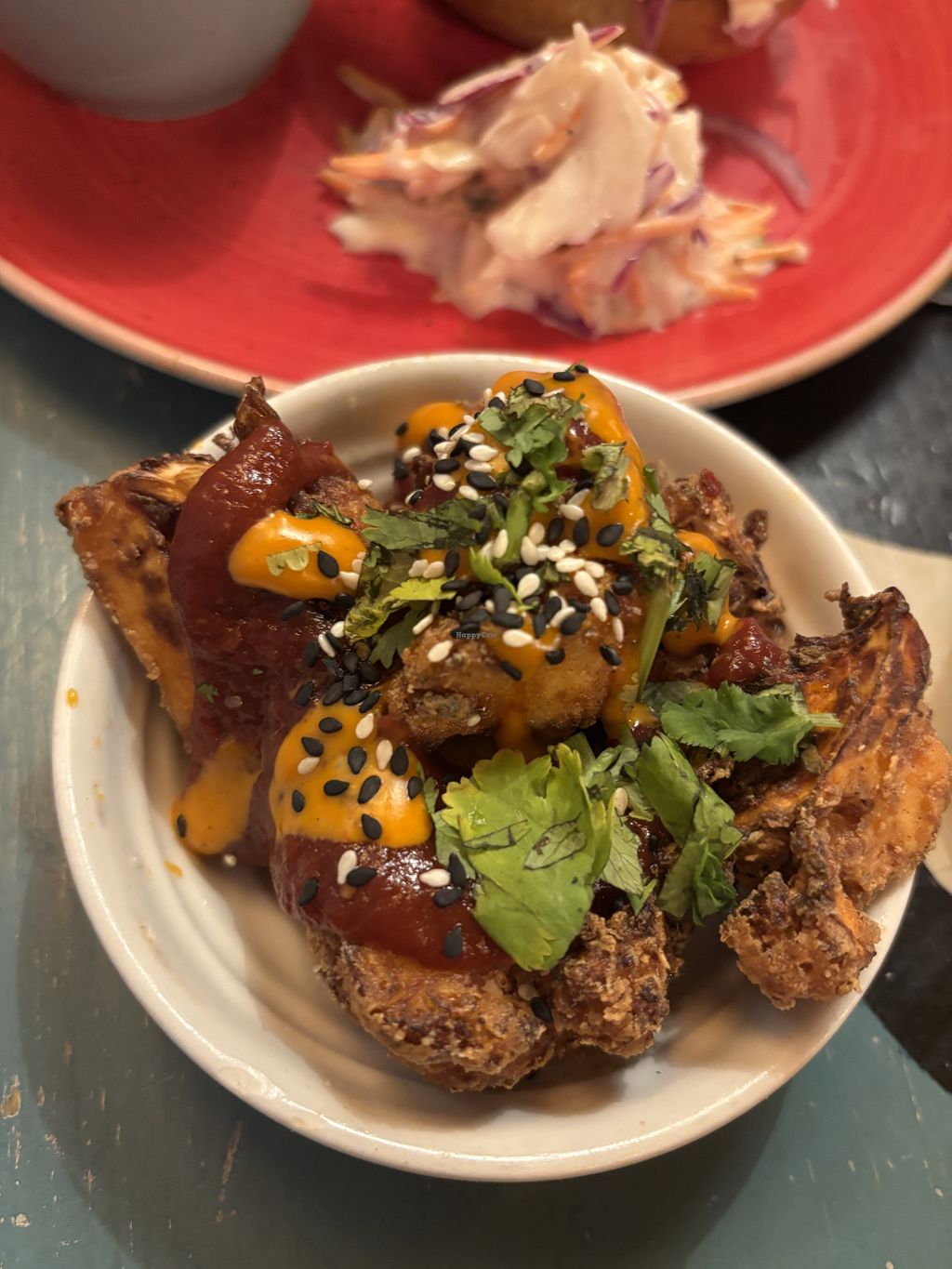 Beyond burger with vegan smoked cheese and vegan slaw