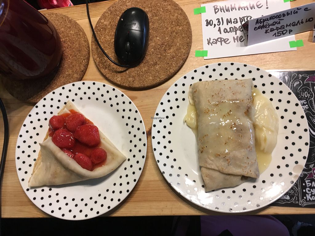 Small place in the market close to the Sennaya station offers good variety of vegan pancakes. Cheap, fast and tasty! Homemade seitan, berries etc. Definitely a must visit for all vegans. The place is really small, so don't plan to sit there for long. There was few other vegetarian places and shops right next to it.