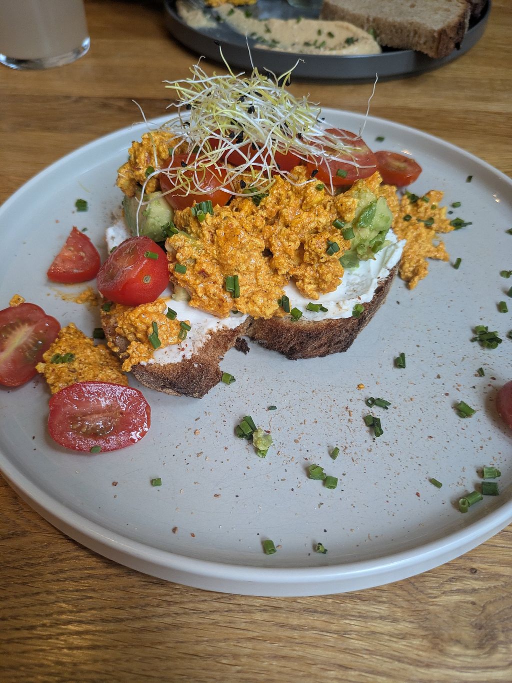 Das vegane Rührei war nicht ganz so intensiv vom Geschmack, aber auch ok.