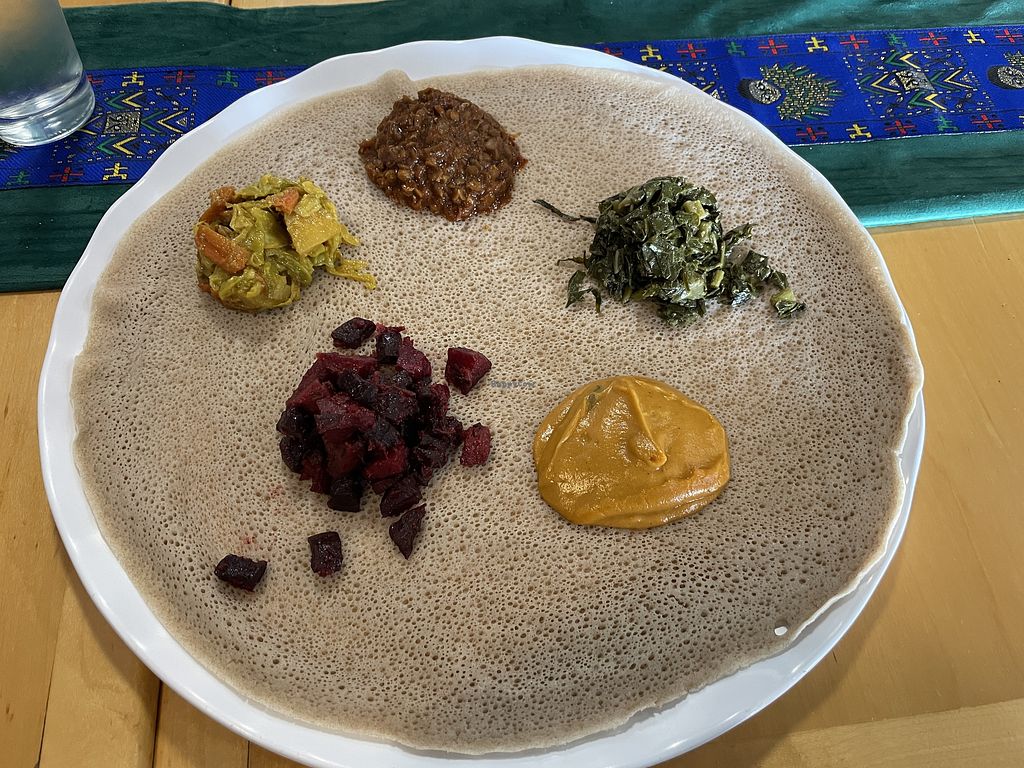 Nice veggie platter with 5 choices and delicious injera!