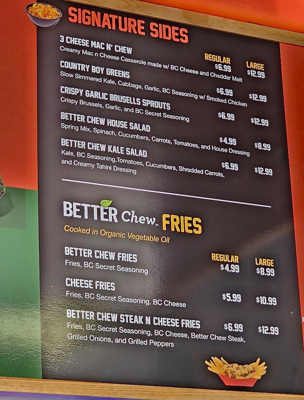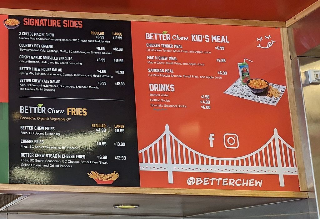 I had the Better Chew Steak and Cheese Fries and they were great! I added some ketchup for sweetness, but the fries are seasoned wonderfully and the flavor of the steak and cheese sauce were fantastic! I will return to try more of their menu!