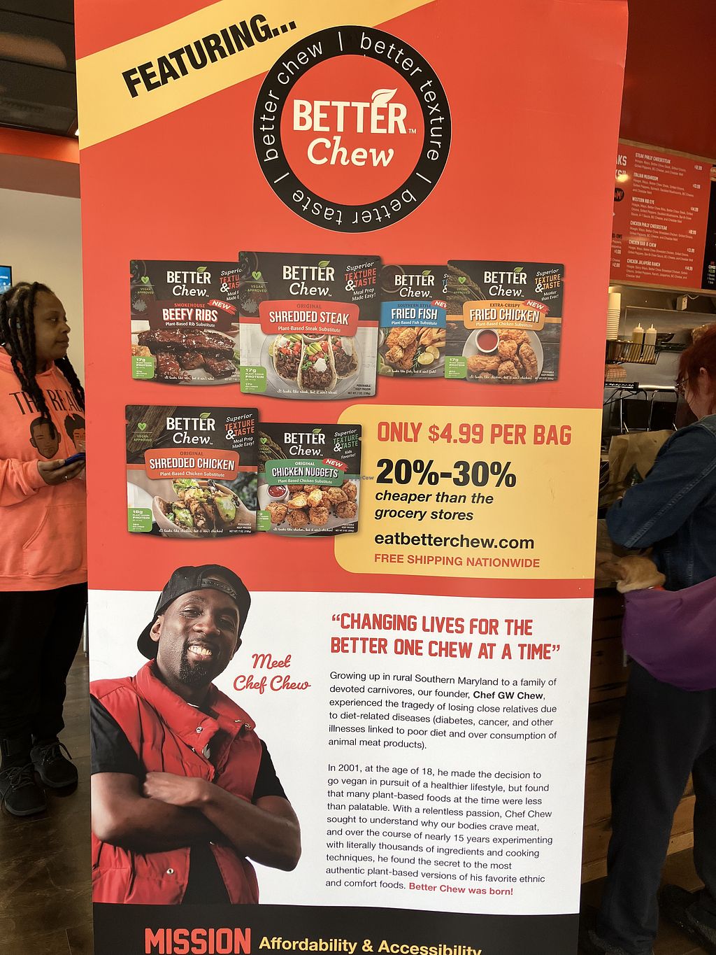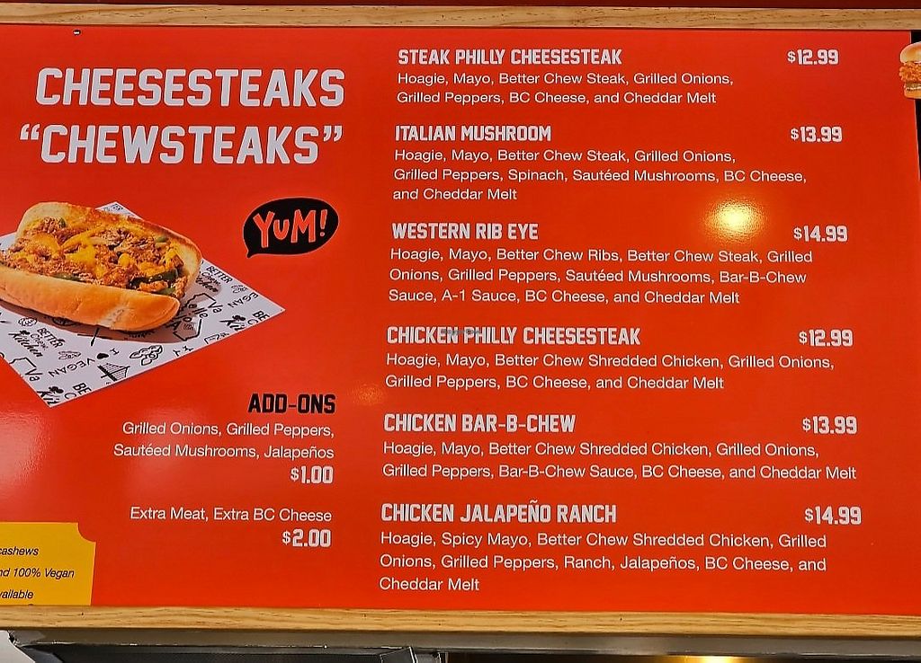 Read moreThey even sell take-home bags of plant based rib substitute, shredded steak, fried fish, shredded chicken, fried chicken, and chicken nuggets. You can also buy these on their website: eatbetterchew.com