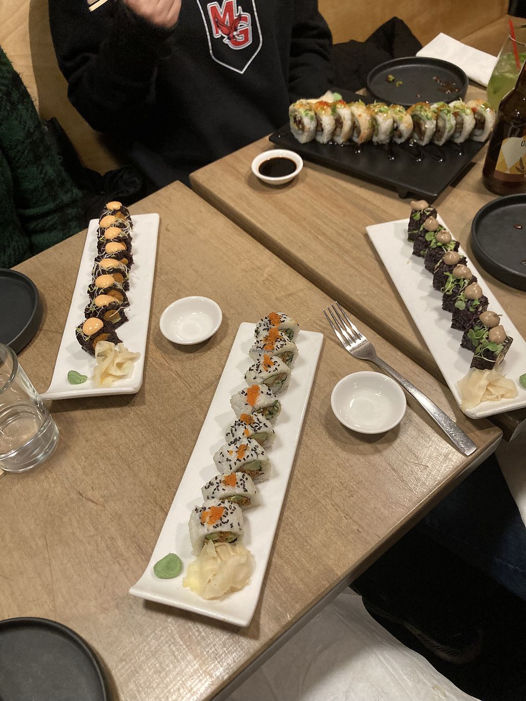 Spicy Mang ($9), Philadelphia rolls ($9), Rainbow rolls ($16)