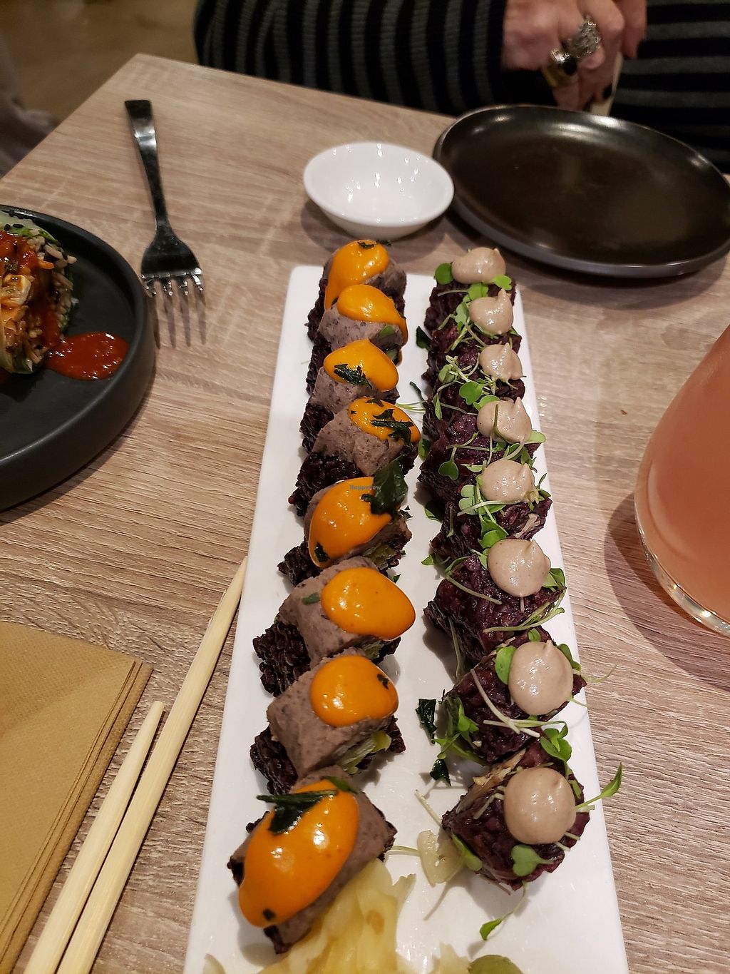 Read moreWhen I think of vegan or vegetarian sushi I immediately picture the boring "avocado roll" or "sweet potato roll" on a sushi places menu. This is not that in any way. Beyond sushi exceeded my expectations and perfectly combine so many flavors together to create each roll. The sunny side roll was my favorite. They made the sweet potato it is topped with have the same texture as fish would on top of a sushi rice. M second favorite was the pickle me roll. Also do not second guess the dumplings, I don't remember what the name was of the ones I got but they were delicious.