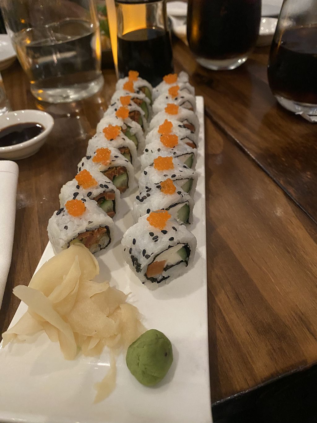 I love this place and their tasty and inventive rolls. I’m happy the server mentioned the off-menu nigiri sampler platter because it was so fun to taste a range of options.