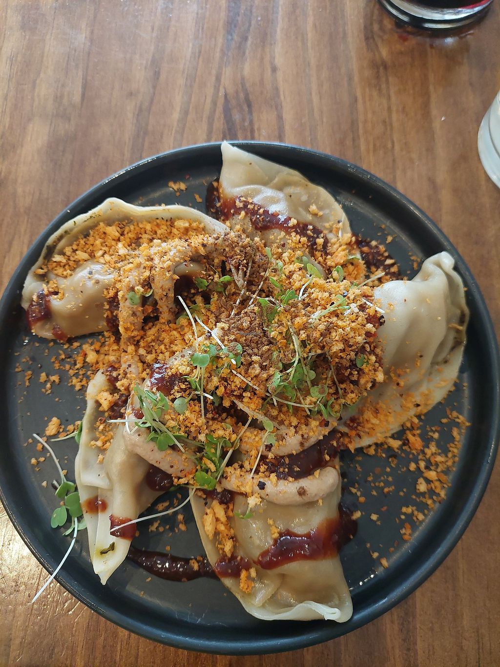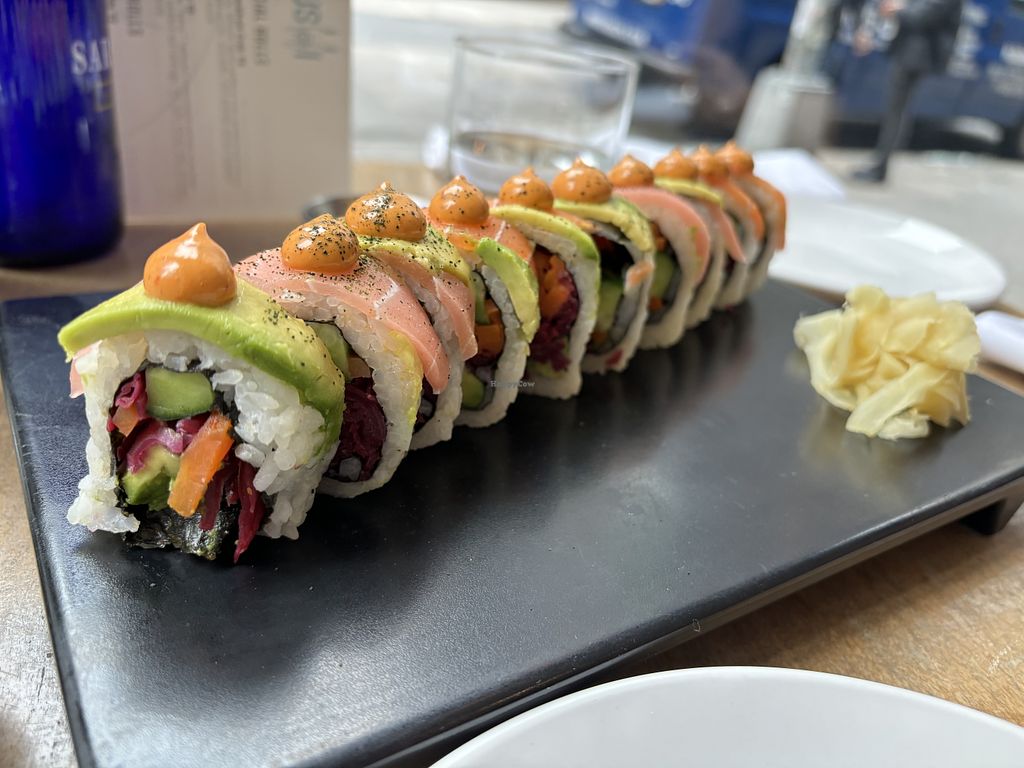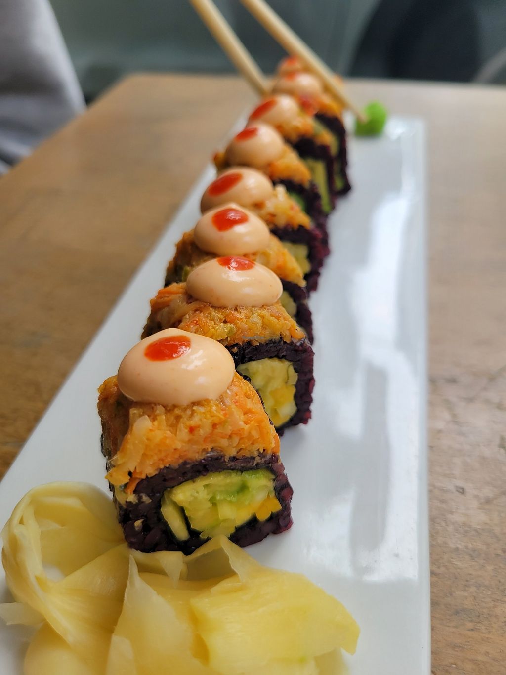 2 different types of sushi and some remnants of the faux chicken skewe…