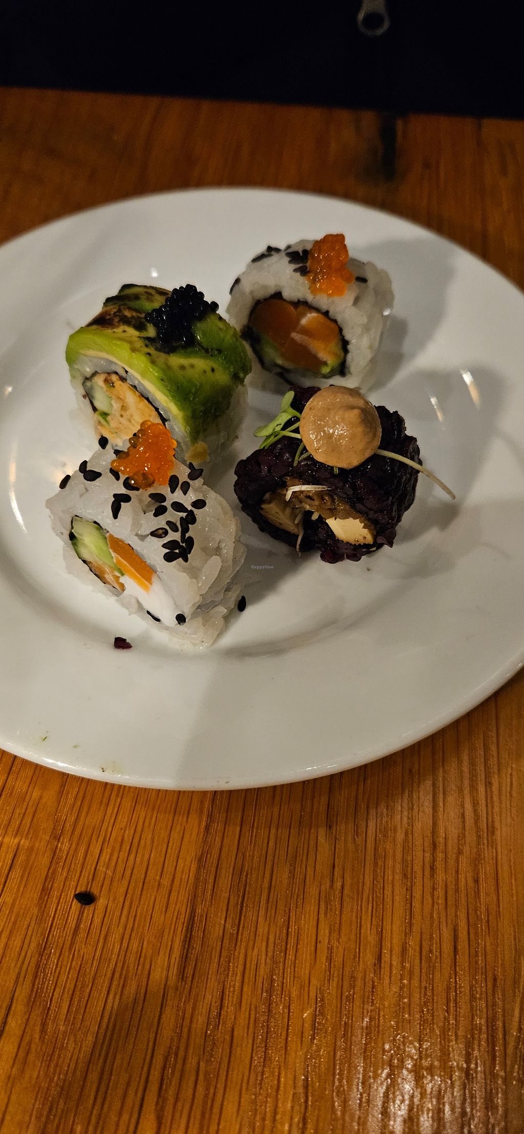 The sushi was absolutely delicious! We also tried the Shoyu Ramen and it was incredible — rich, flavorful, and comforting. The rolls were fresh and well-balanced. Great vegan options and lovely presentation. Definitely coming back!
