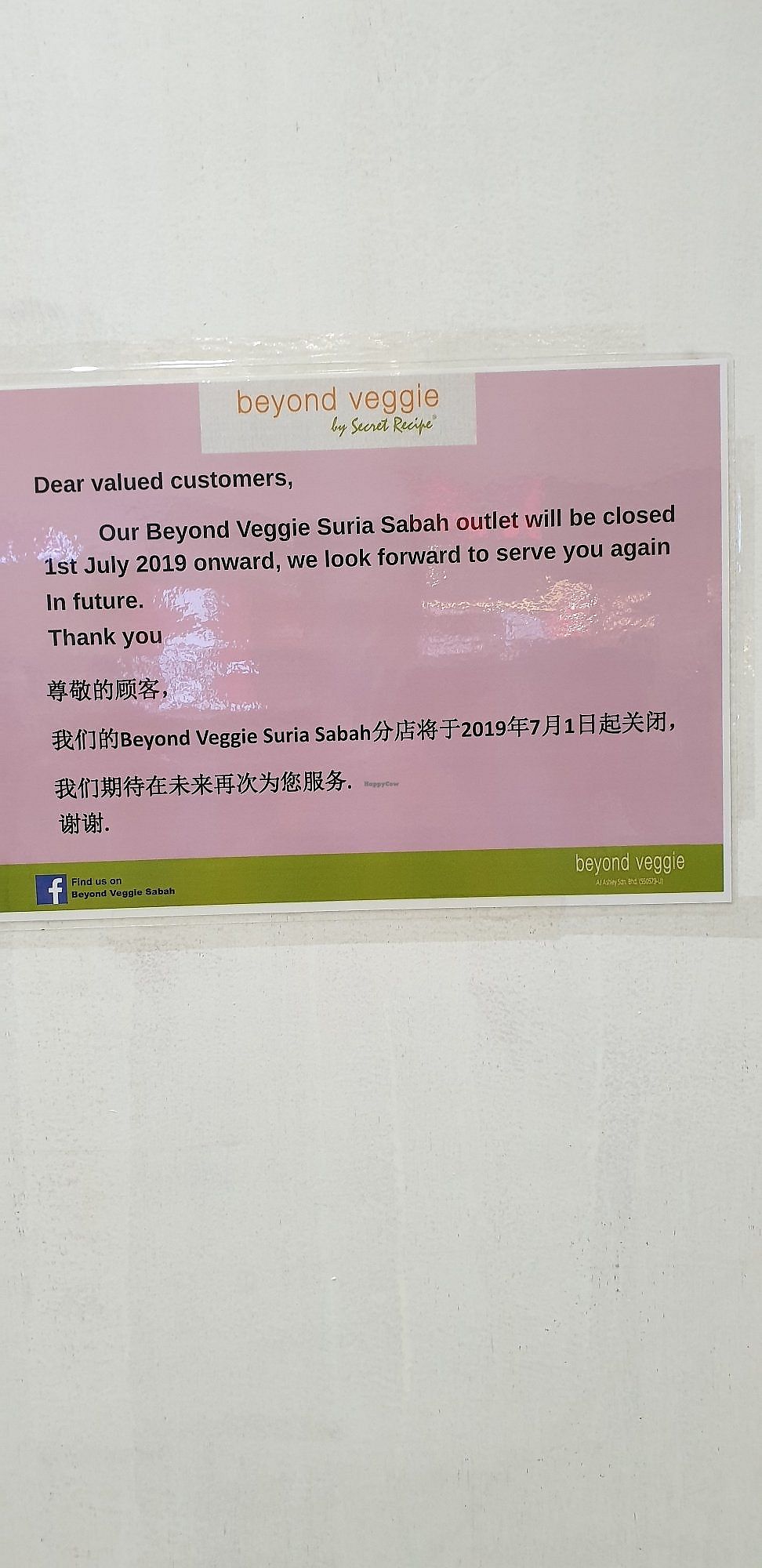 Beyond veggie closed since 1st July 2019
