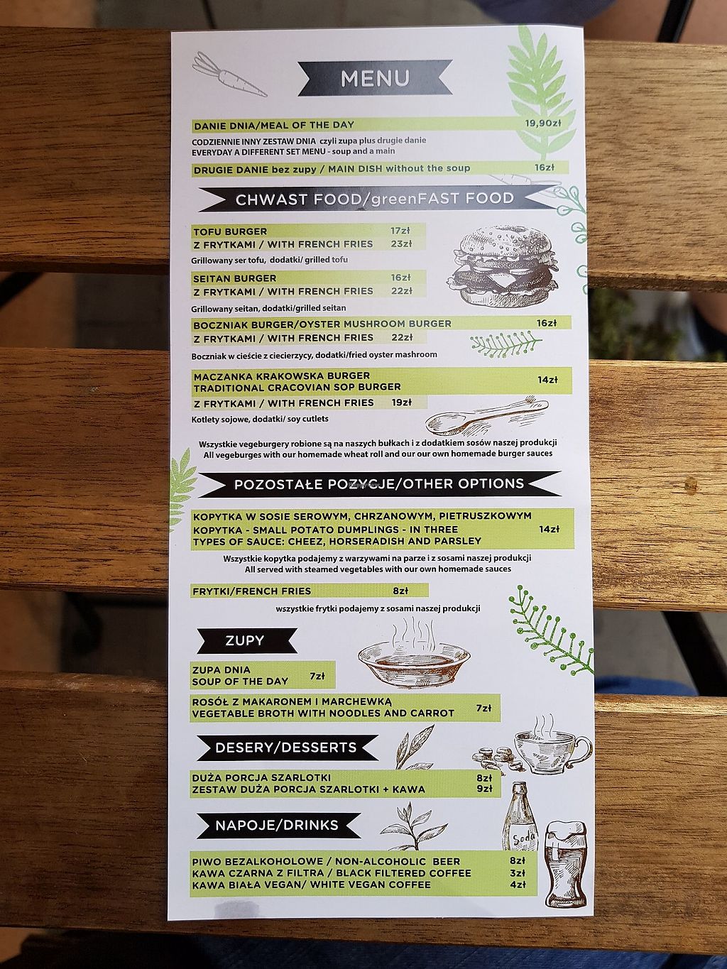 Tasty burgers! The menu is rather limited, but they serve a different meal of the day (consisting of a soup and a main dish) each day, so there is variety. For just 20zl for a set the prices are fairly low. There are only a few small tables outside though, so if the weather is bad, takeaway is the only option.