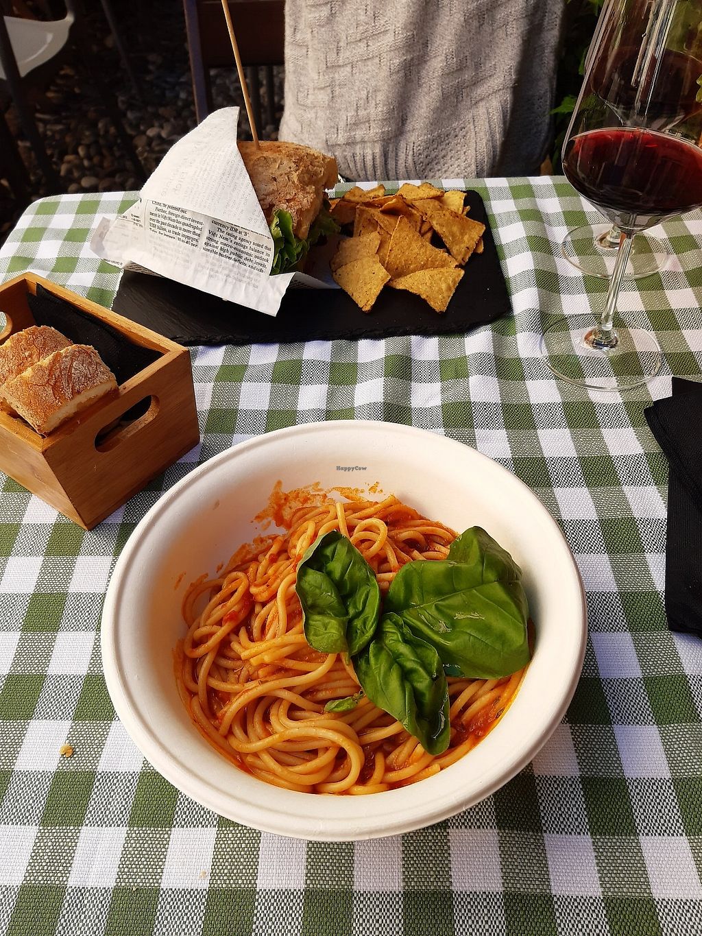 Spaghetti, Cheese Burger and wine