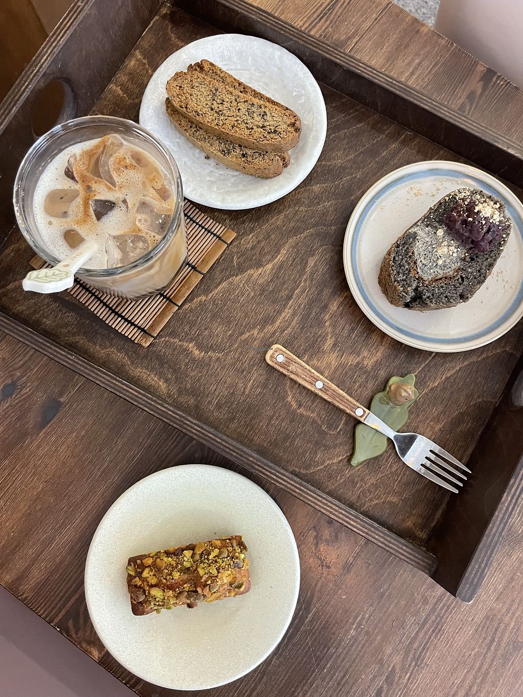 I loved this place. It's a cosy space (only 2 tables and a bench to wait if you order takeout). The staff are extremely friendly and kind. It's aesthetic and cute. The coffee was good and the baked goods I tried were delicious. I tried the peanut butter jam cookies. I've never tasted anything like this before so it was so good and they also gave me a pound cake for free. I'm not sure what kind but there was some kind of fruit in it and it was really nice. I also got a basil sogum bread to take away. Overall great place!!
