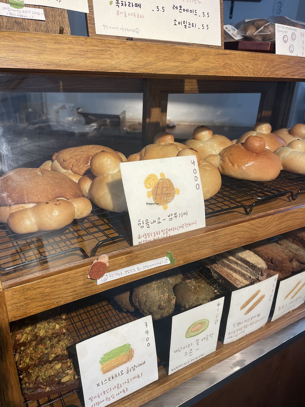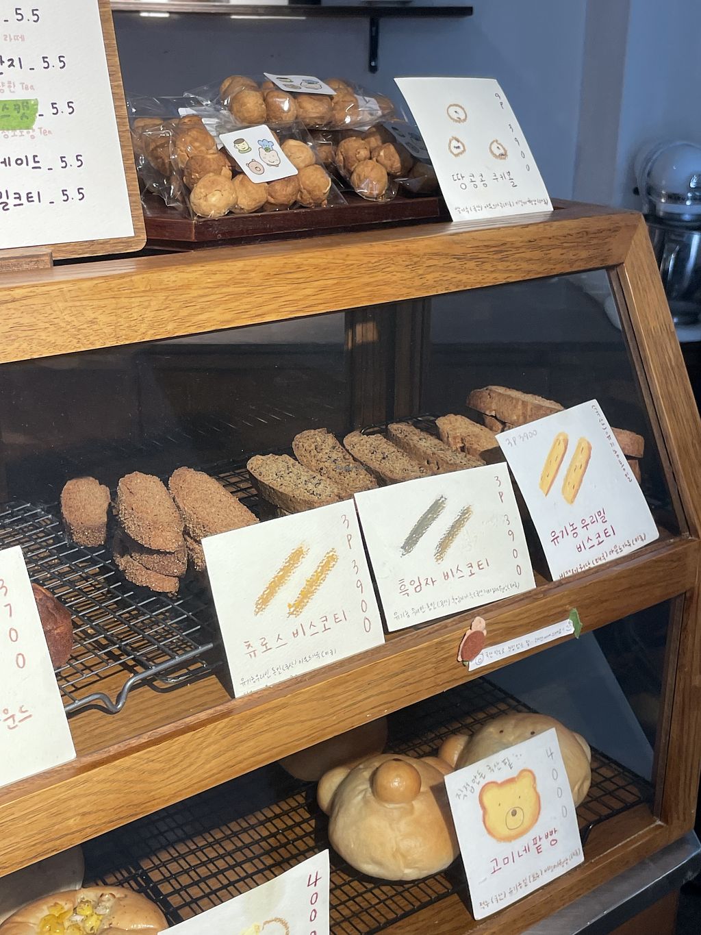 It’s a really small Café (only 3 Tables) but I LOVE the atmosphere~ it’s so comfy and cozy. The owners are so so kind and I always get a service (desserts for free)! I love their 소금빵 (salt bread) but all the other desserts and the biscotti are also super delicious. Every time I go there it’s a special little comfy time~