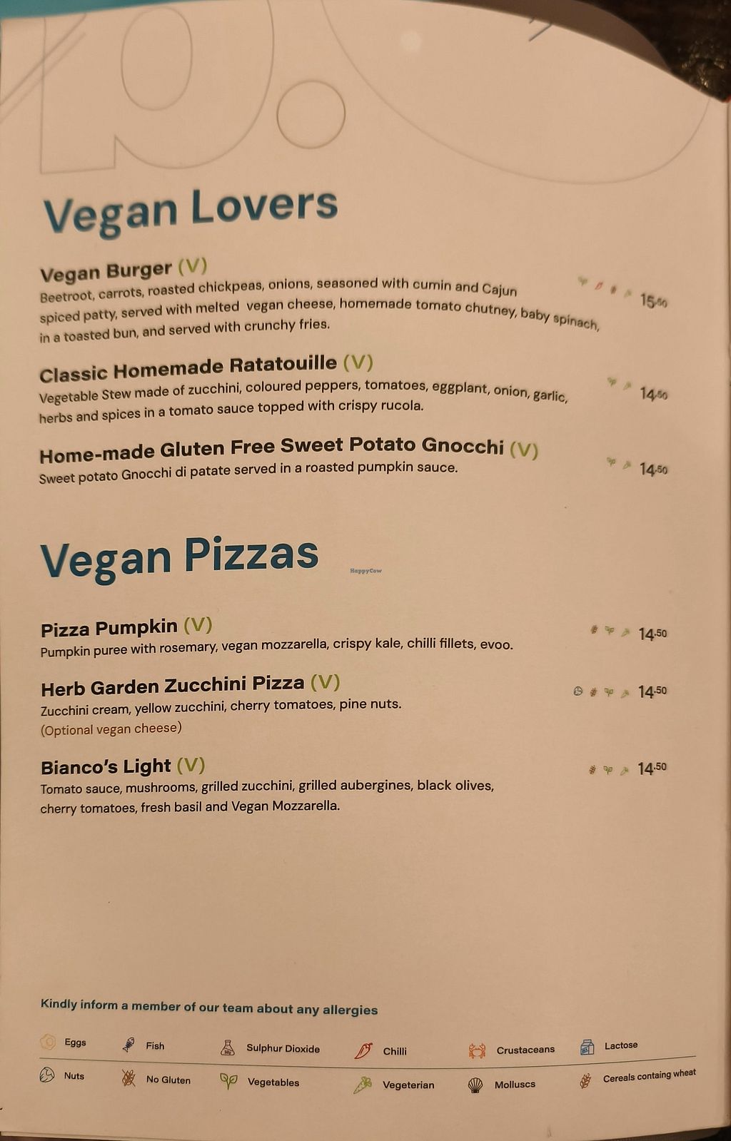 Vegan menu
