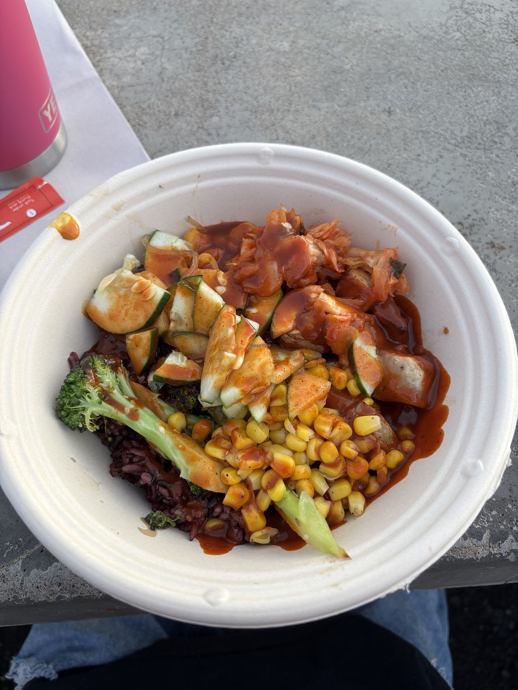 this is kind of like chipotle for Korean/Asian fusion. It’s inexpensive and delicious. They offer a wide variety of veggies and tofu for protein.