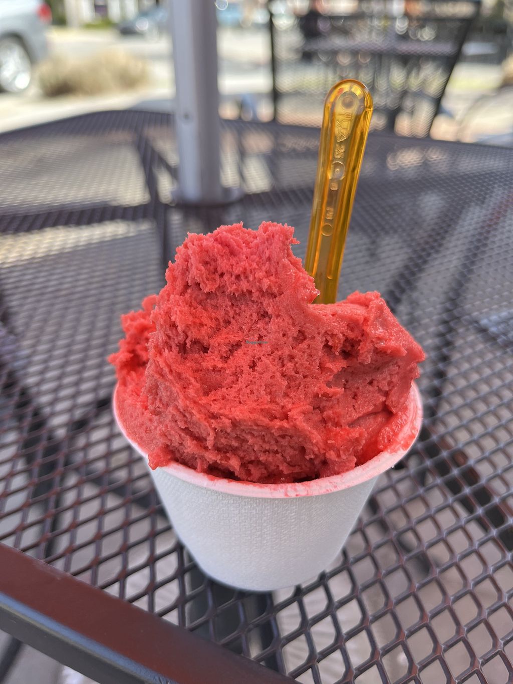 This coffee and gelato shop on Center is the best. There are always vegan choices - this Raspberry hit the spot, it was delicious. Add to that super nice staff, and relaxing outdoor seating, and I’ll always go back.