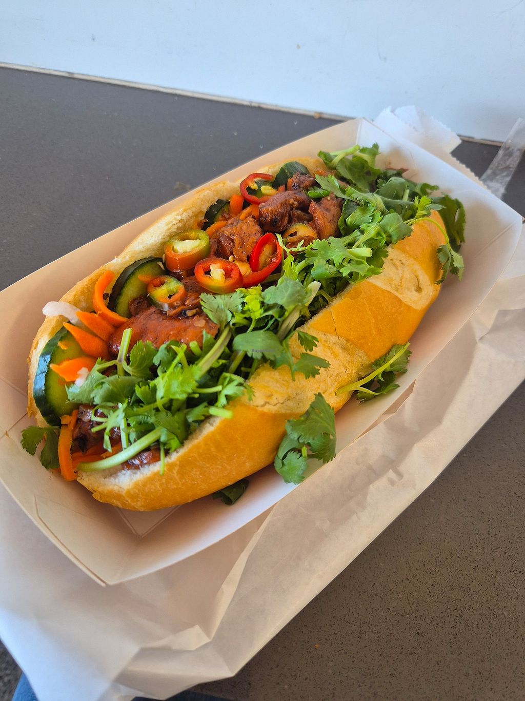 Got the Vegan pork belly. Loaded up with chilli this is brilliant.