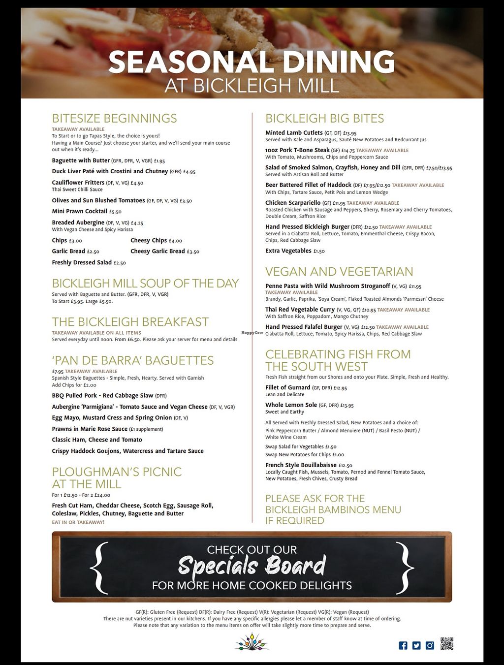 Menu 1/2 (VG=vegan and VGR=vegan upon request)