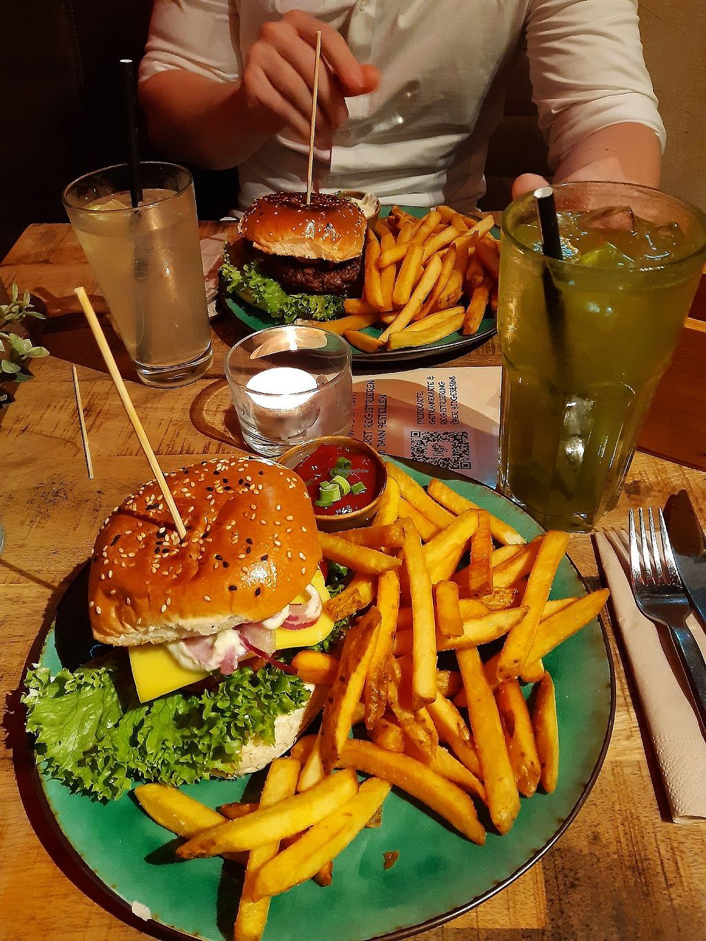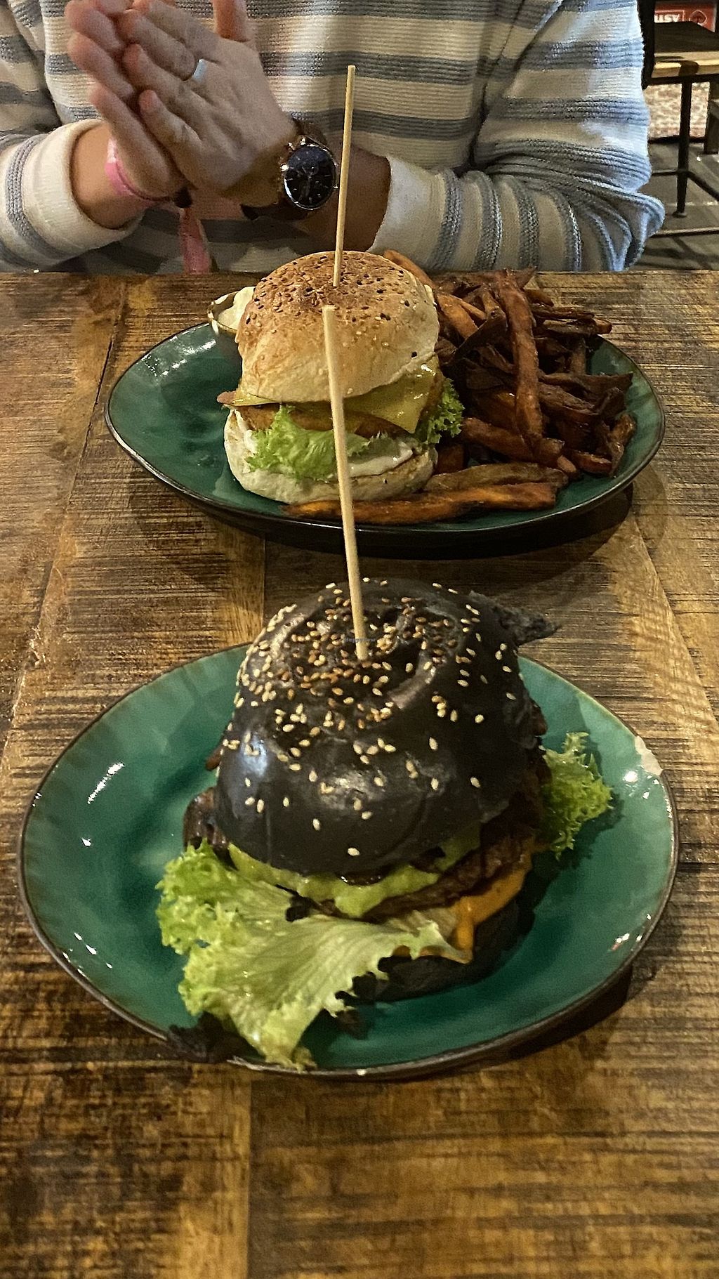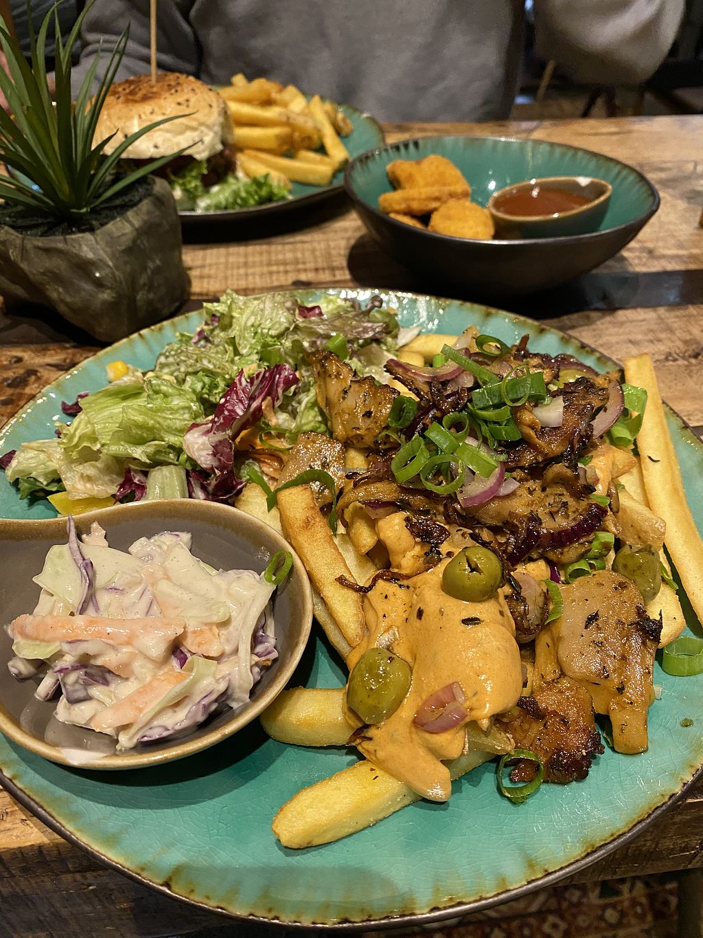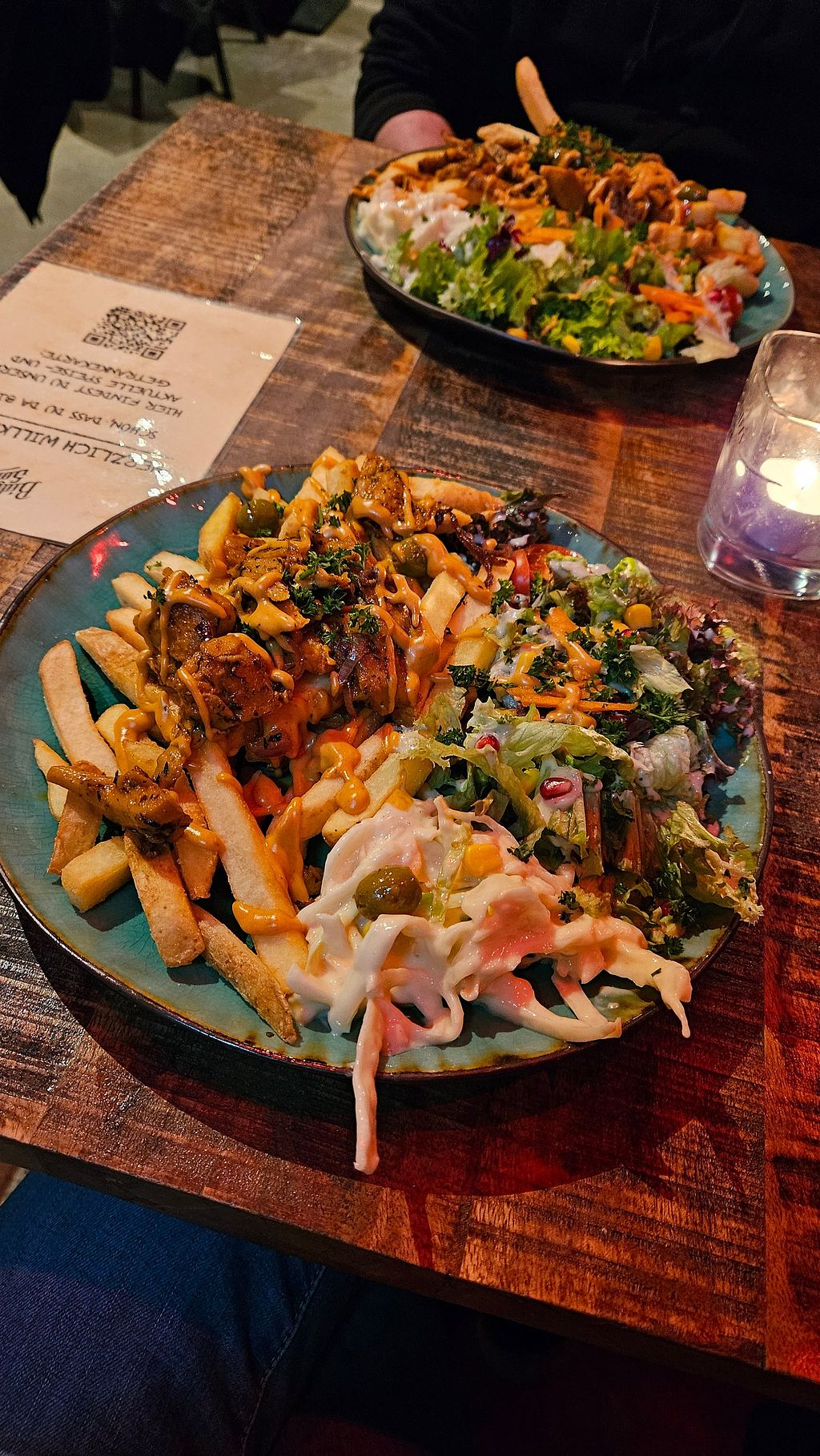Mozzarella Burger mit (zu) viel Salat, Barbarian Bavarian loaded frie…