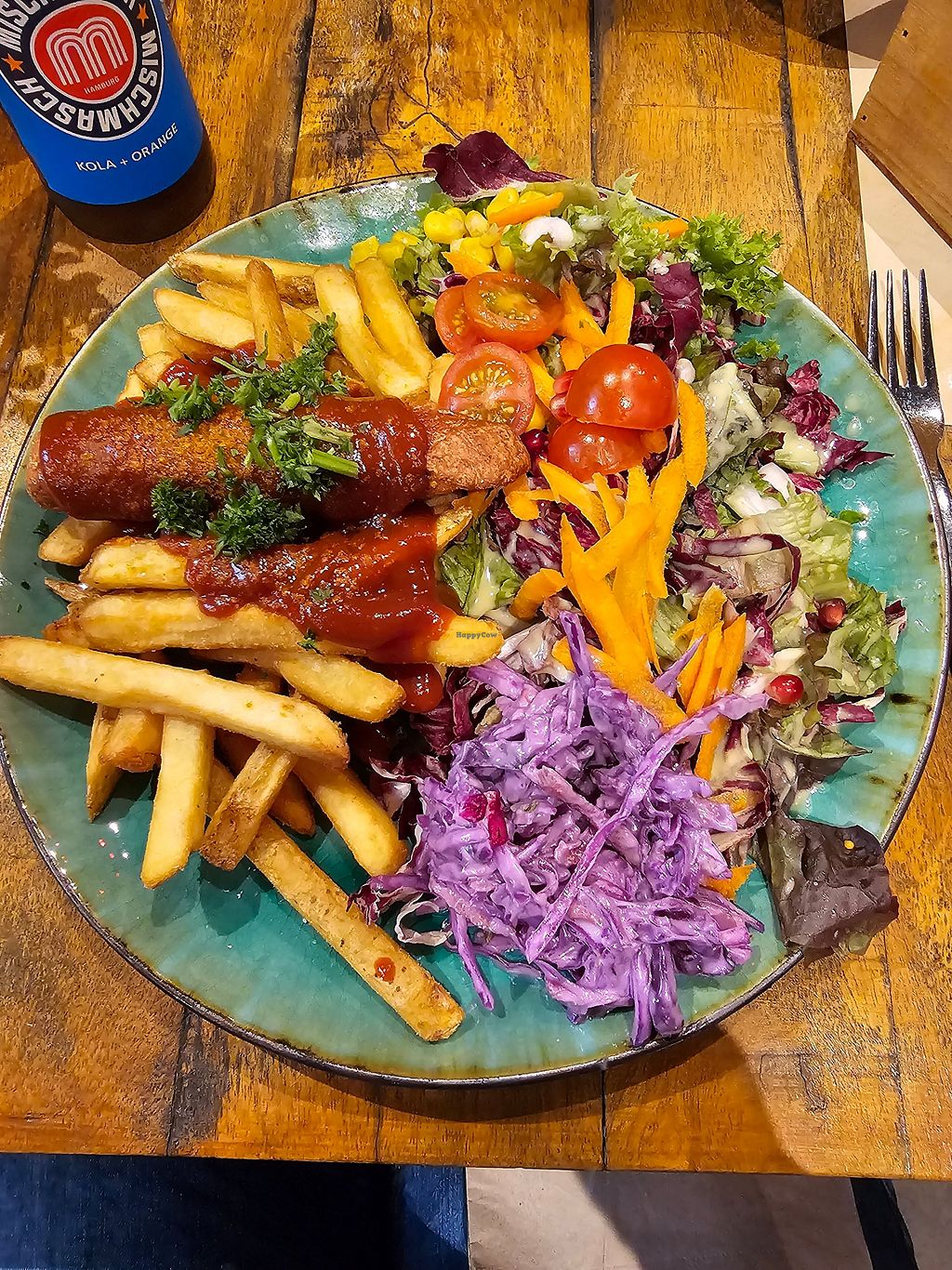 Currywurstteller, kleine Wurst, wenig Pommes, (zu) viel Salat?