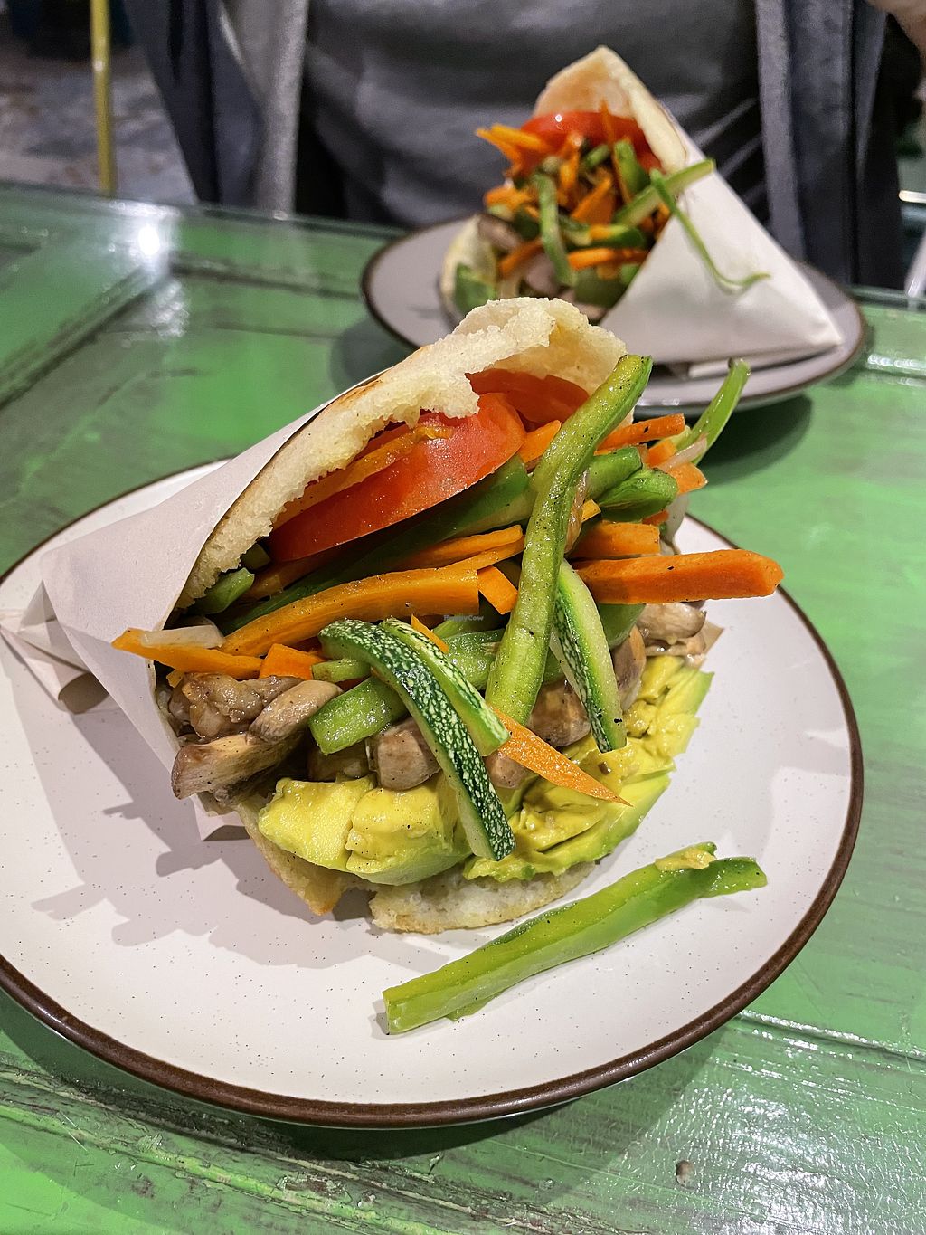Arepa original with veggies, palta, plantain and tomato