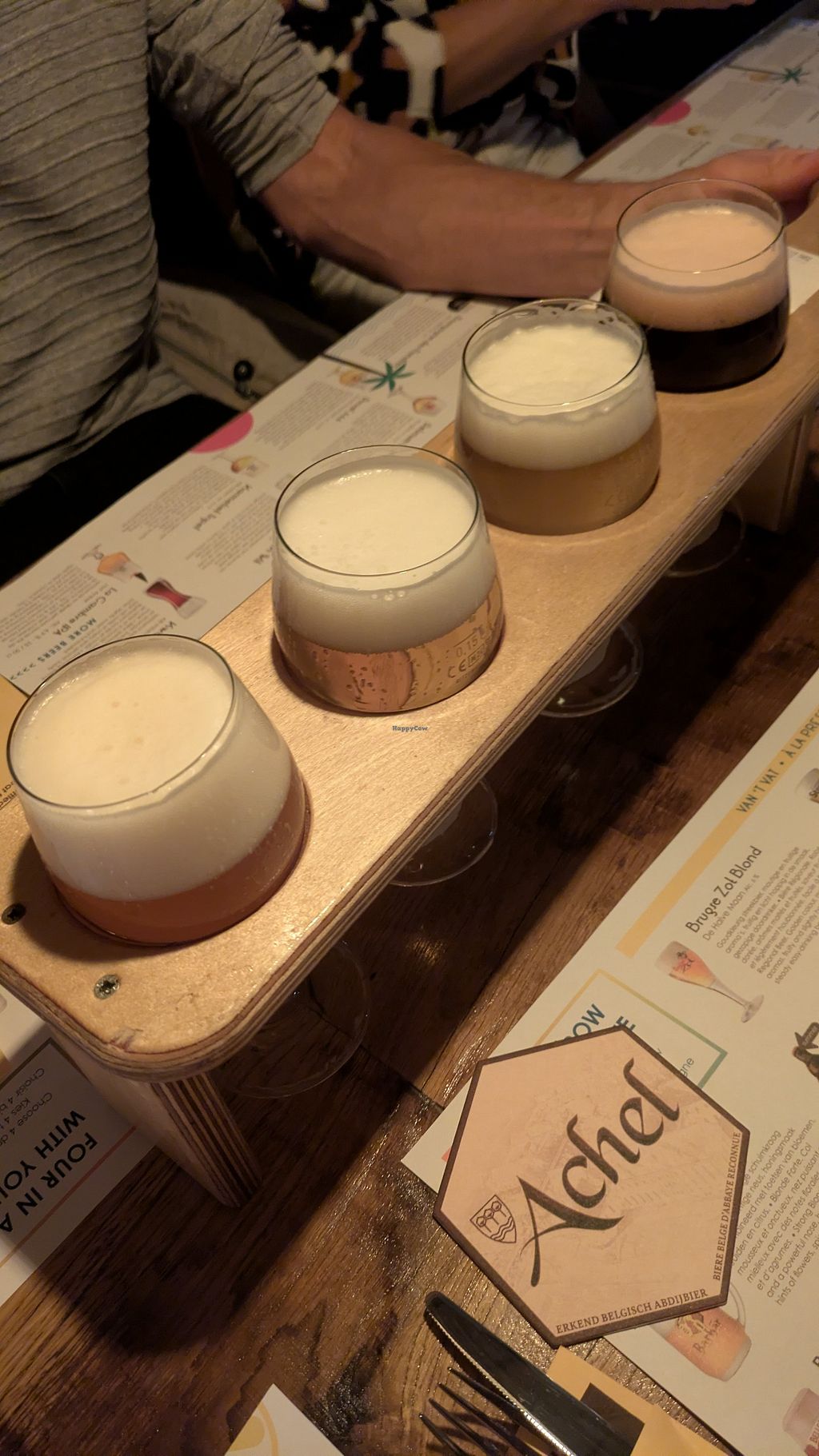 Lots of awesome Belgian beers but vegan food was poor. I LOVE Mac and cheese. And I'll try for this not to influence my review but: this wasn't it 😂 the beers were lush and the service 10/10. The non-vegan meals were enjoyed too. But the vegan Mac and cheese was overcooked penne with a bland creamy sauce. It didn't really seem cheesy at all, and there were no textures to break up the texture of mush 🙈 don't get me wrong: I ate it all (because it cost almost €20). But would definitely not get it again. My sister ordered the vegan curry, which was okay(ish). Go here for the beer but I'd recommend going elsewhere for a meal (they also had soup or burgers, which we did not try. The chips/fries were okay)