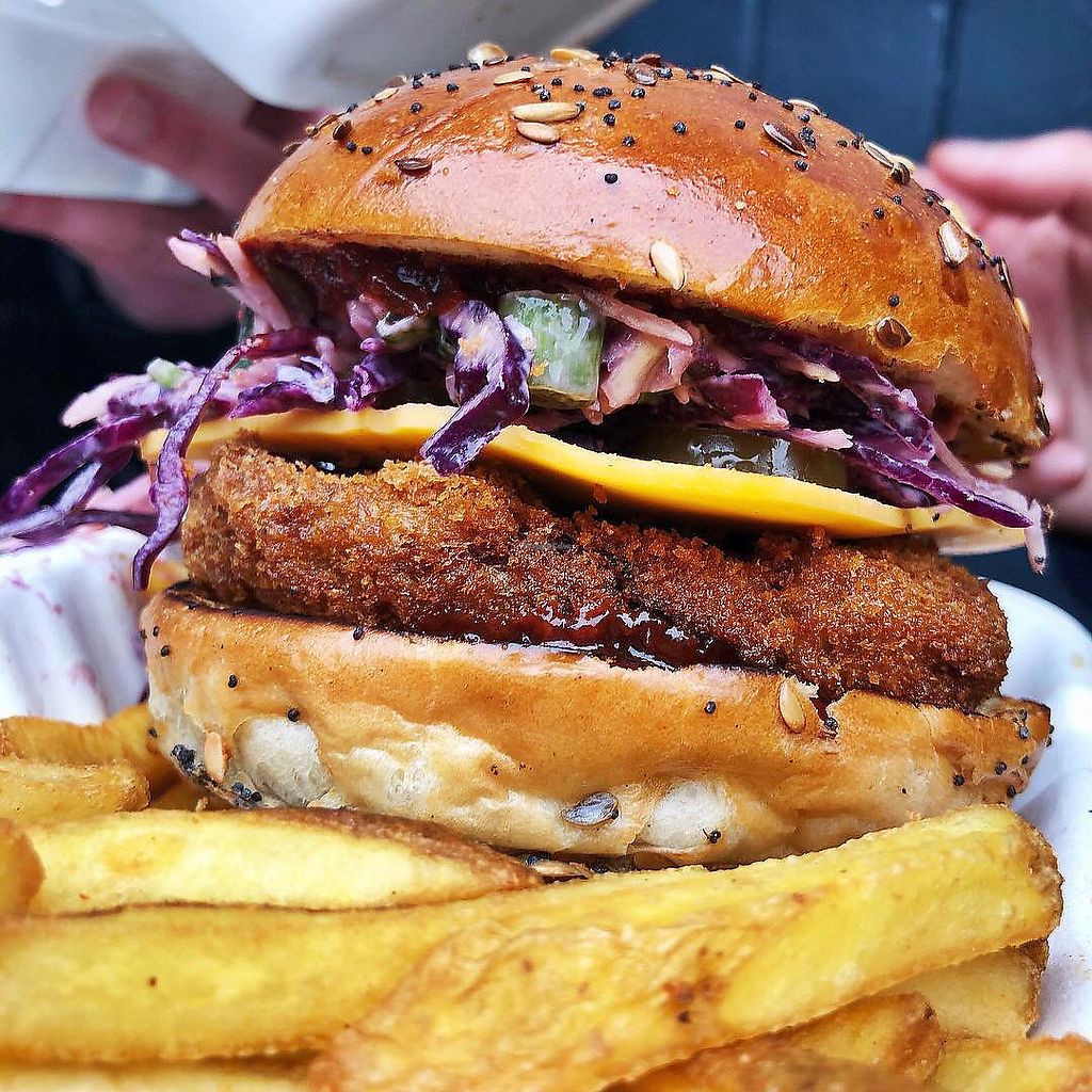 Market stall operating once a week at Broadway Market starting summer 2018. Selling vegan fast food like fries and diner-style food made from jackfruit panko-coated and deep-fried to create simulations of burgers and wingz. Drinks available. 2020 STOPPED.