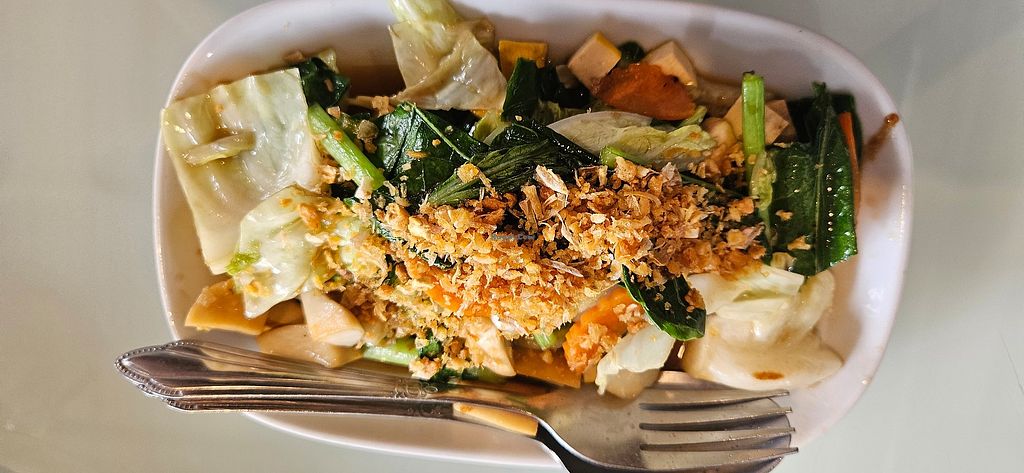 Really enjoyed the meal I had at Blue Cow. There wasn’t a lot of vegan options around this location although most places will accommodate you on request. I added tofu and extra garlic and for a bowl it only cost 60TBH. Friendly service and open outside eating made it comfortable. A dedicated section in the menu for vegan options and understanding of vegan requirements is helpful.
