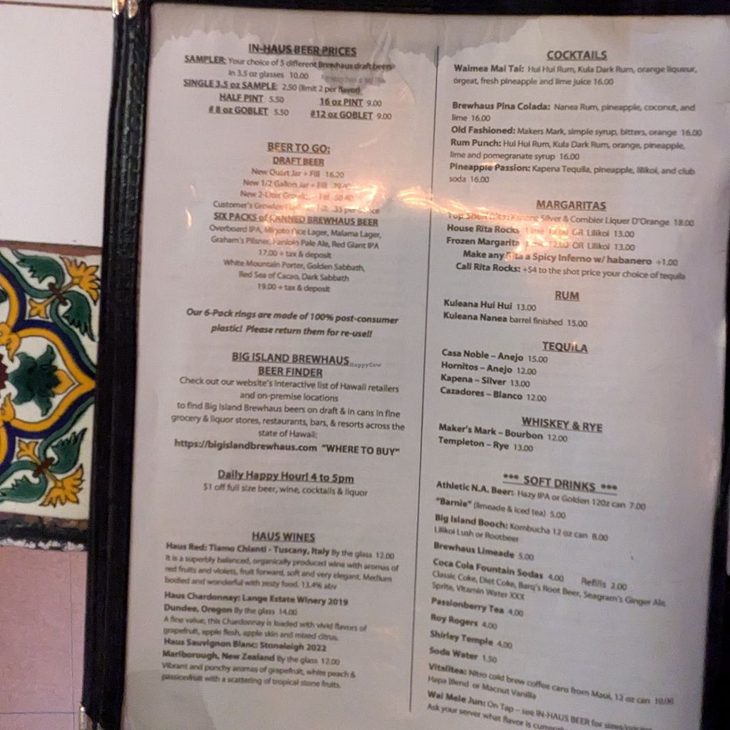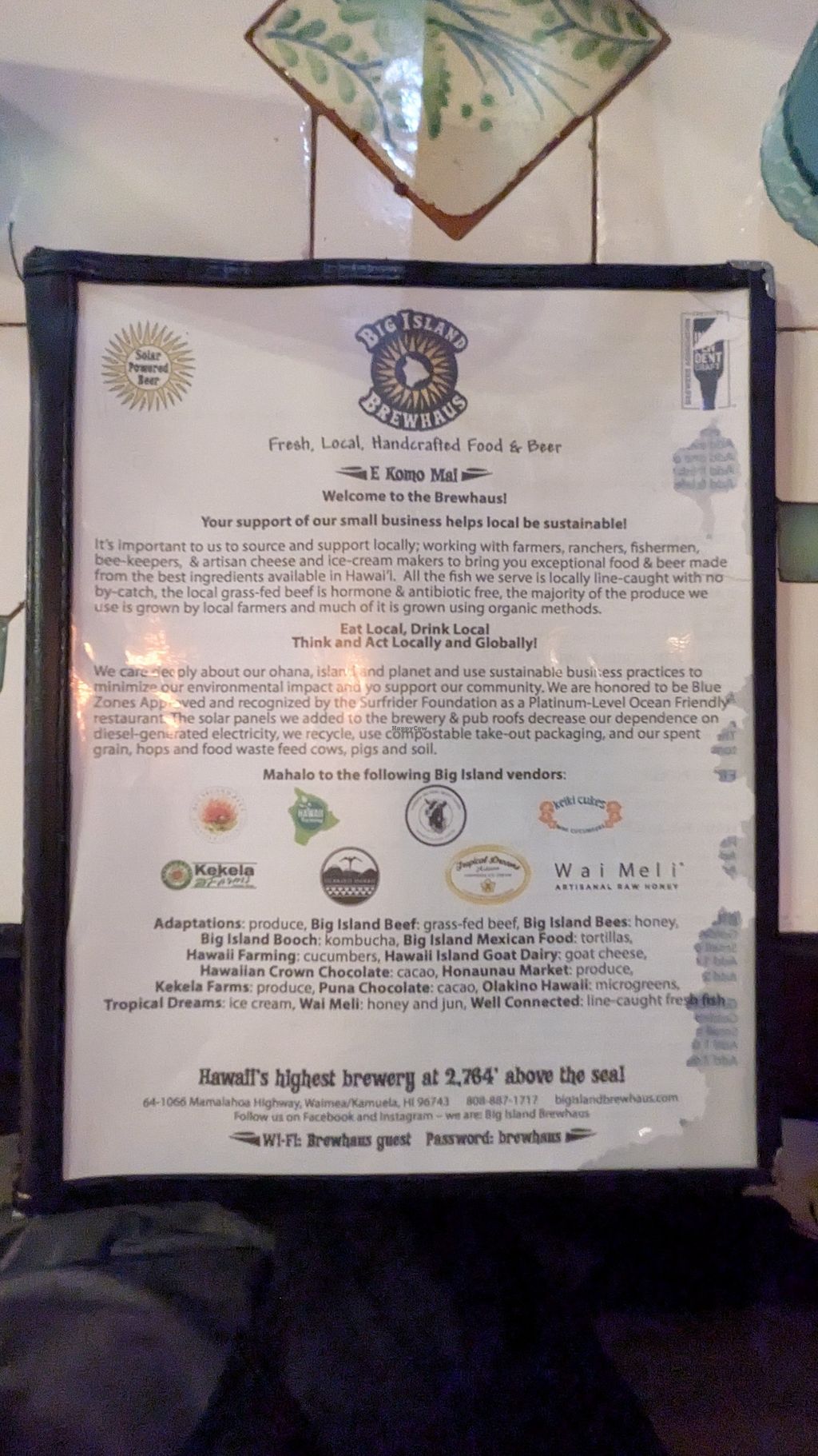 Stopped in here twice on our way through Waimea. Both times we had some snacks, but filled up quickly on their black bean dip/mac nuts and some beer. Honestly the food was good, but the beer is what made both visits special.