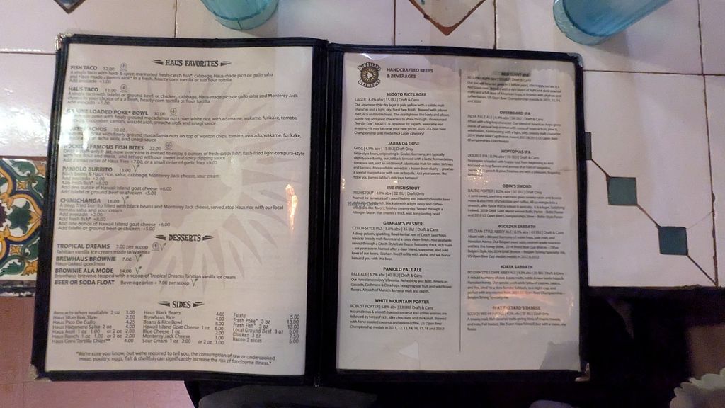 The Brewhaus has so many vegan options! Most menu items can be made vegan by substituting for local macnut cheese. The servers are very knowledgeable and friendly about what options are vegan. I recommend the kabocha pumpkin with vegan Creme fraiche or the Astro Nachos with falafel and macnut cheese. Their beer is good, too!