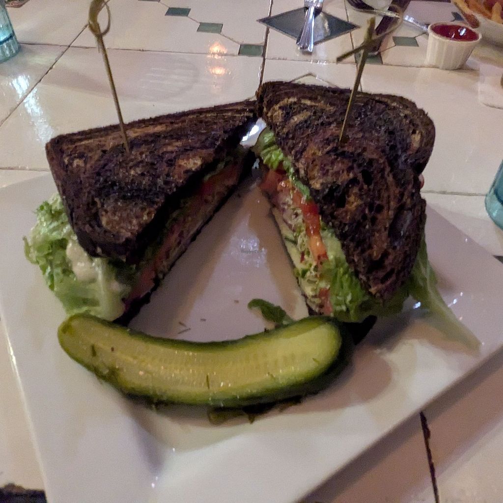 Ordered the farm fresh veggie on rye. It came with a pickle. The rye was tasty and the veggies were fresh tasting, no sogginess.
