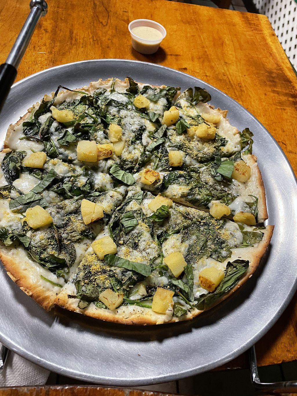 Review 03/2023: We’ve gotten this pizza and the garlic balls a couple times and have been a little disappointed each time. I don’t know if they’ve just changed their vegan cheese or have different staff, but the pizzas definitely don’t have as much flavor as they used to. They also still don’t have any vegan meat options which has been disappointing.