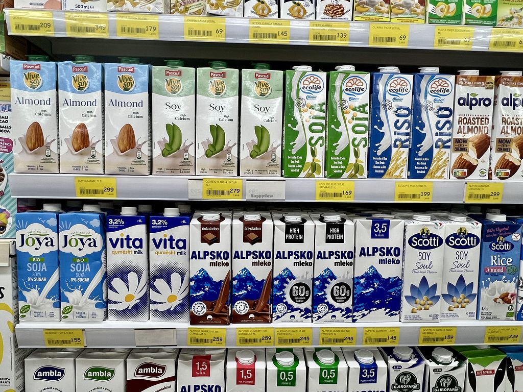 Kruja is not the most vegan friendly town. This is the only supermarket in the town (there are some small convenience stores). It has a big range of plant based milks- almond, soy, rice milks, as well as vegan snacks (crisps, chocolate, nuts) and cereal bars. If you’re self catering there are things like pasta, sauces etc. No meat alternatives or cheese/yoghurt.