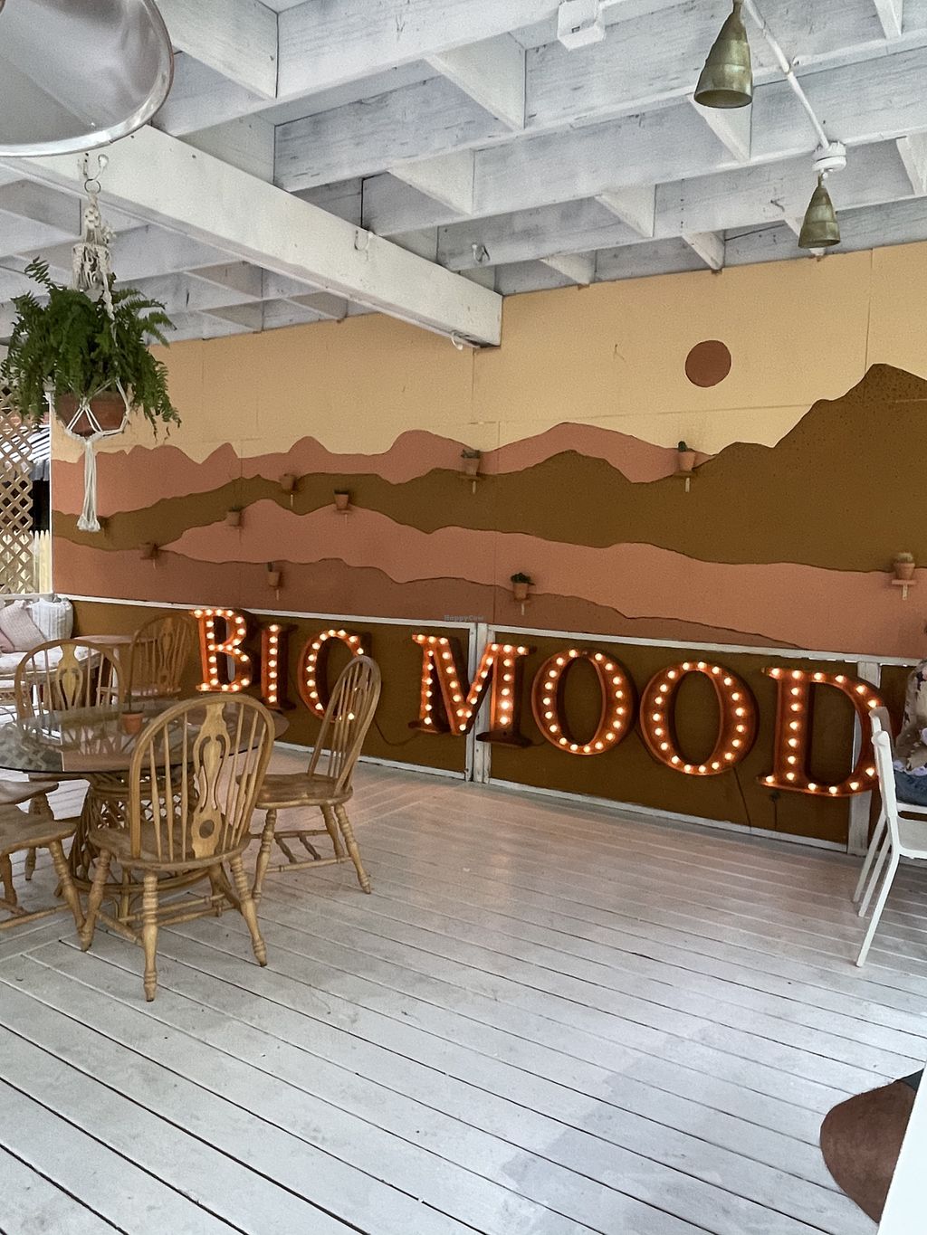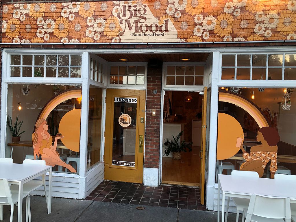Plant based cafe offering vegan comfort food and 70s style desserts in a fast-casual setting. Uses locally sourced and organic ingredients. Previously known as Root & Bloom. Card payments only but cash tips accepted. Instagram @eatbigmood. Reported closed December 2021.
