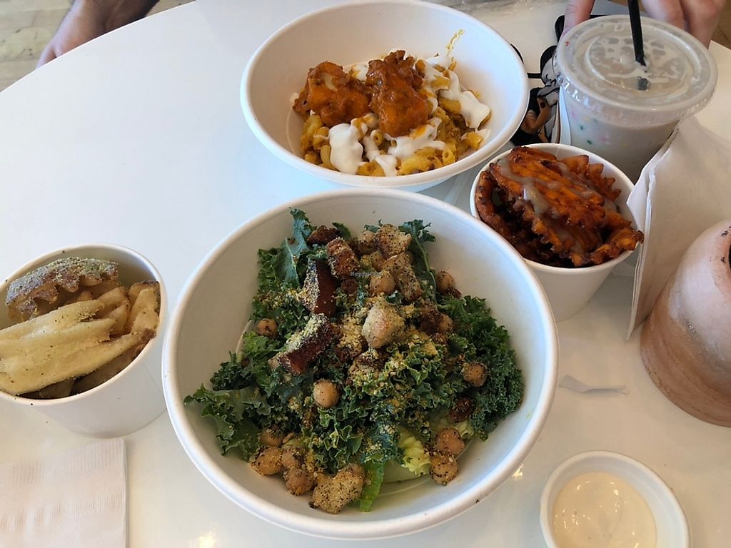 I cannot recommend the Root and Bloom enough!! Every time we’re in town we eat here as much as possible, but after trying their new menu we might have to make a trip back just to eat here! I had the Blanche Bbq wings with ranch and the Edna in the Buff (mac and cheese) twice and it was amazing both times. Highly recommend. Also try the Charlie Brown milkshake it tastes like pumpkin pie. This is seriously my favorite vegan restaurant ever 🌱