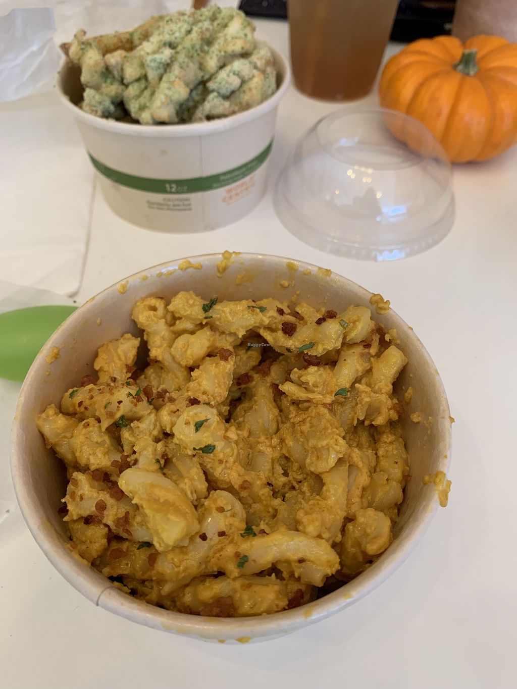 They offer vegan mac and cheese two ways - BBQ and Buffalo. My husband got BBQ and I got Buffalo, and both were super tasty! I highly recommend.