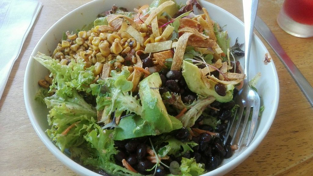 I finally had a chance to experience what all the rave is at this cute Cafe. I loved the ambiance of the outdoor patio and all the employees I had interactions with were friendly. I had the "Edna" which was mac & cashew cheese sauce with greens and crispy fried BBQ tofu.... Yes it was actually crispy! The citrus water with chia seeds accompanied the meal perfectly. Everything was delicious and I will definitely be back.* A quick tip, I didn't know we had to get our own cups and utensils from a little stand on the patio, after looking around a little bit wondering where everyone got their cups from, I did find them. Not a big deal at all, I just wished they had told me😄still 5 stars all around.
